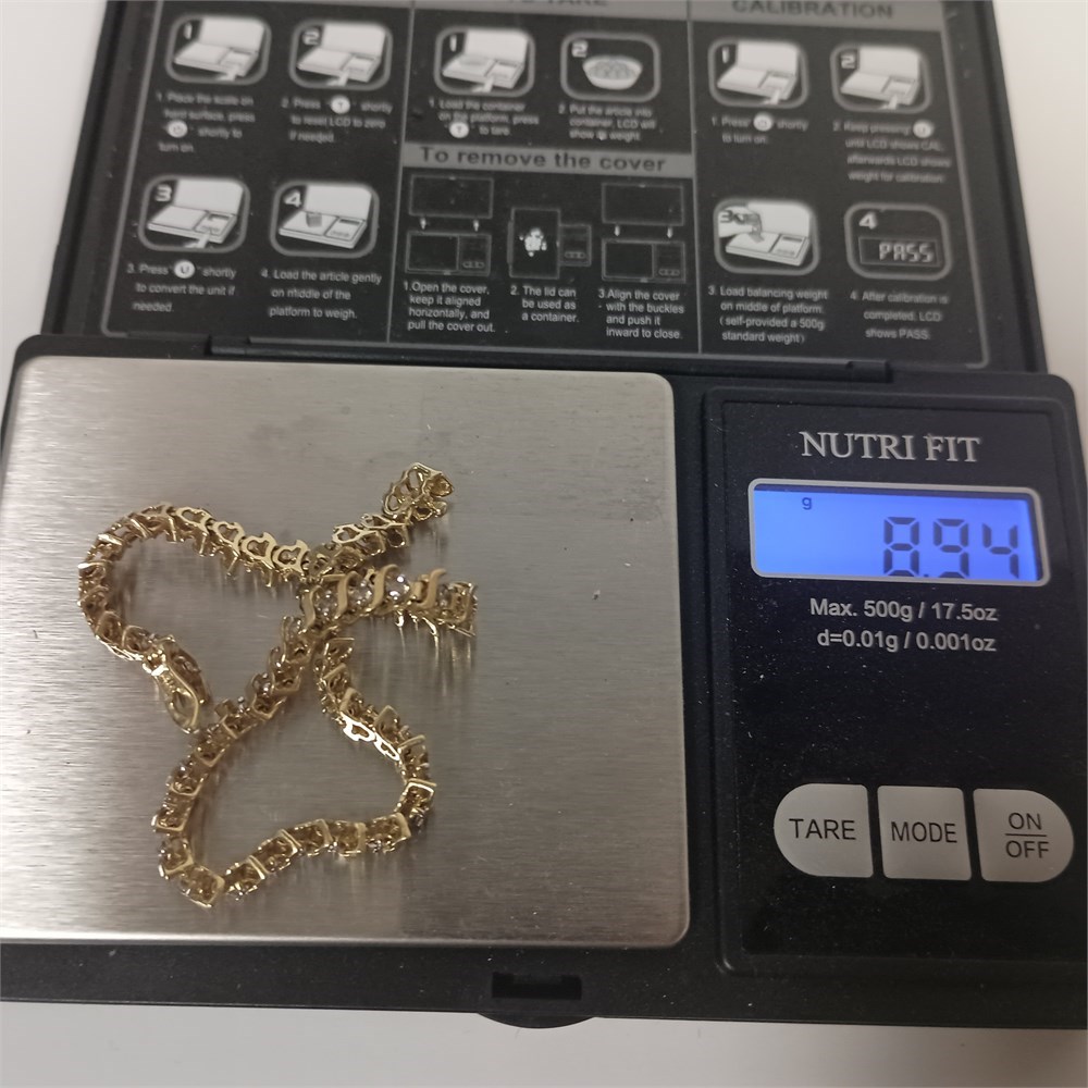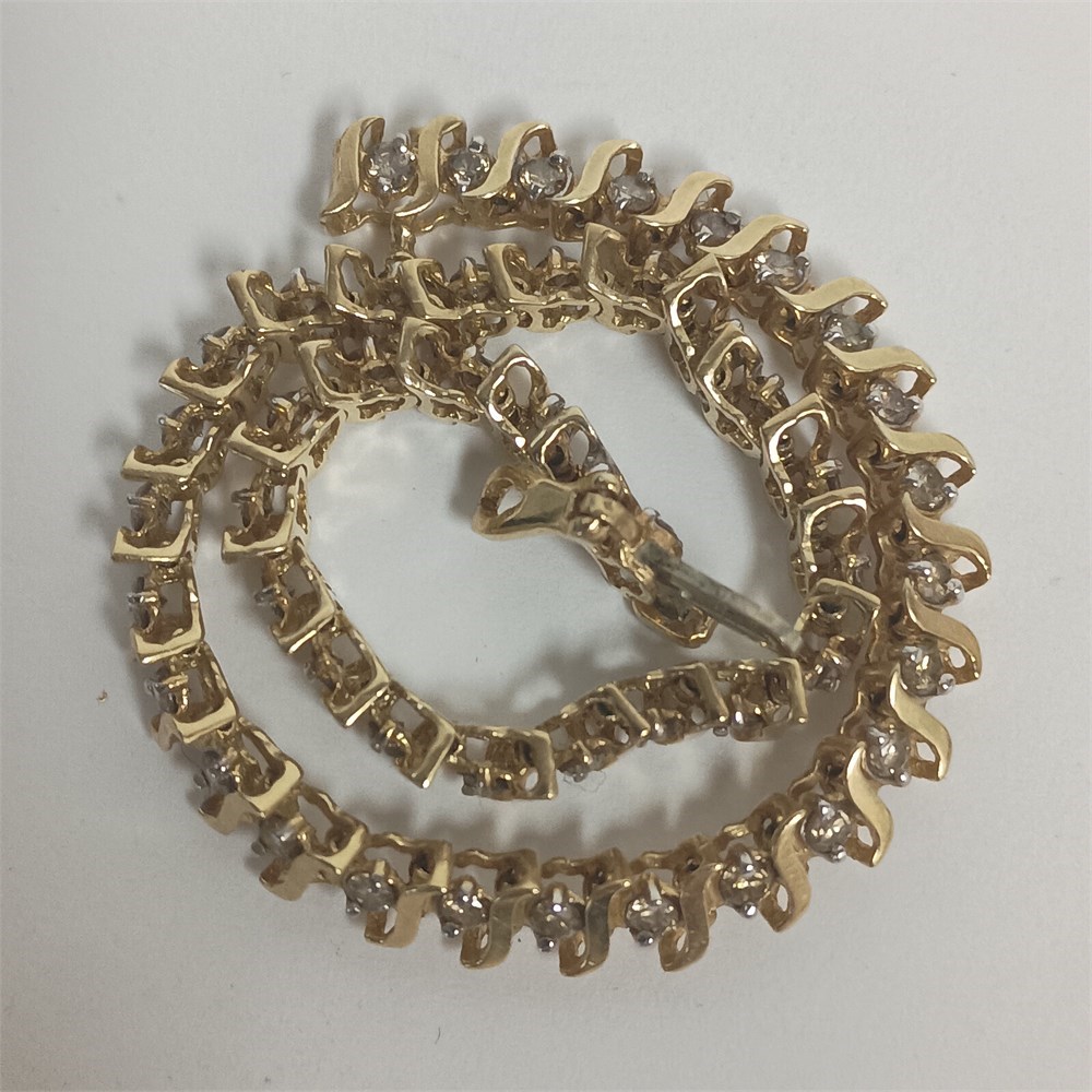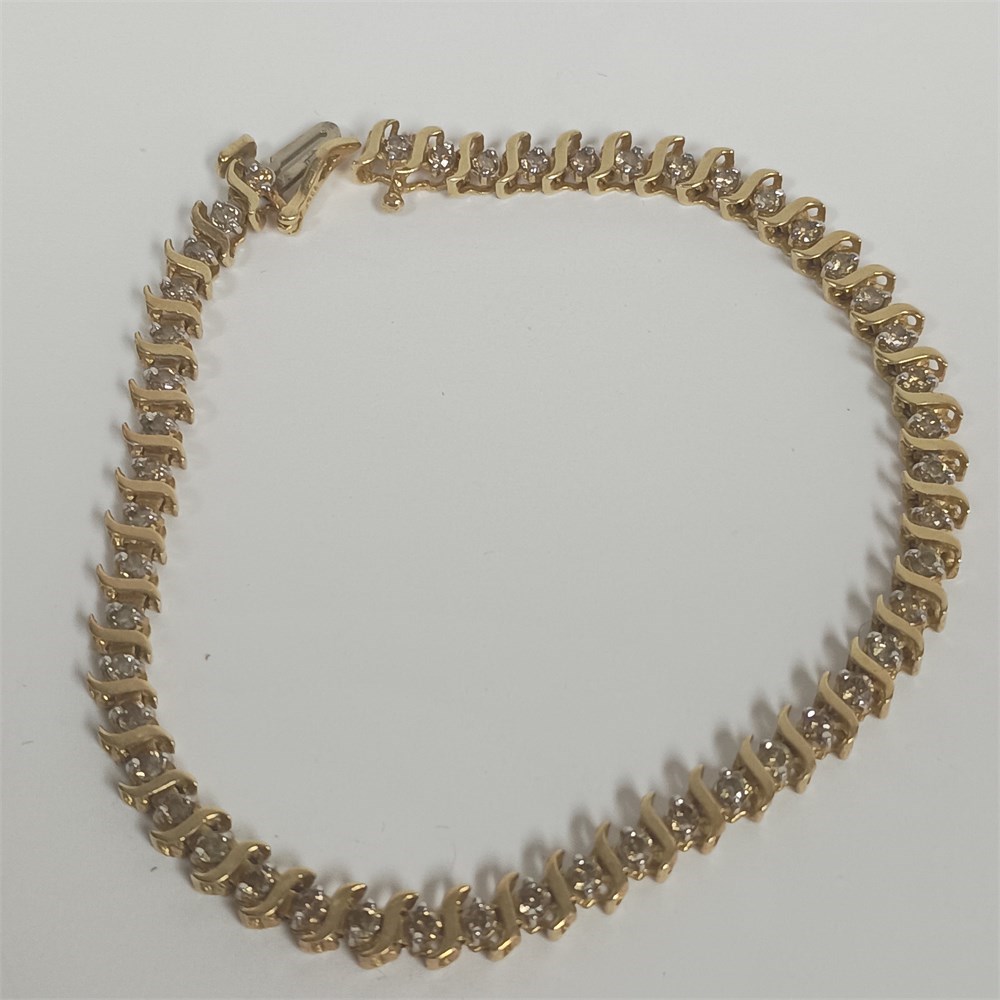 Beautiful estate diamond bracelet for the high bidder. Solid 14kt gold with a row of 49 diamonds.  Very nice, well kept. See photos.