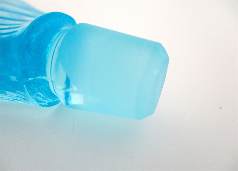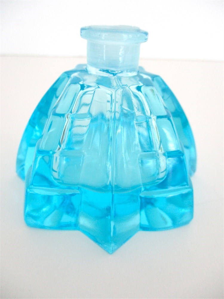 Vintage Czech, Geometric, Art Deco Turquoise Blue Glass Perfume