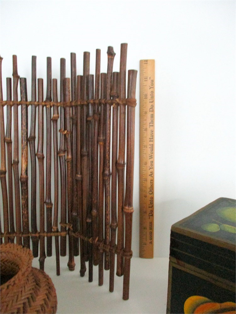 • Decorative Bamboo Screen Panel or Trivet: Small freestanding bamboo stick arrangement, for a trivel, or display accent. Approx. 12 in. tall.