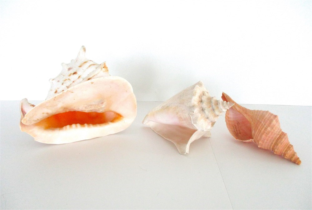 Trio of Large Conch and Sea Shells