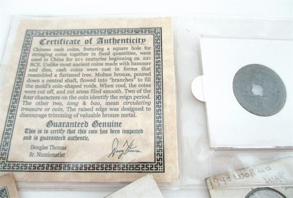 • Certificates & Ephemera: Small certificate of authenticity slip and vintage coin envelopes.