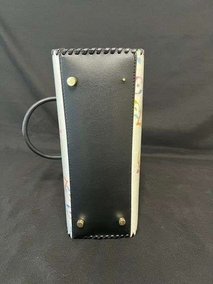 This is not a purse, but rather a gift bag or tote bag.  It is a paper bag that is protected by a clear PVC sleeve.  Shows some use, but acceptable.  Missing one small foot on the bottom.  I guess you should expect upscale paper bags from this maker considering the purses are priced in the thousands.  You can find sales online for this item in our estimated range.  Believed to be circa 2020.
