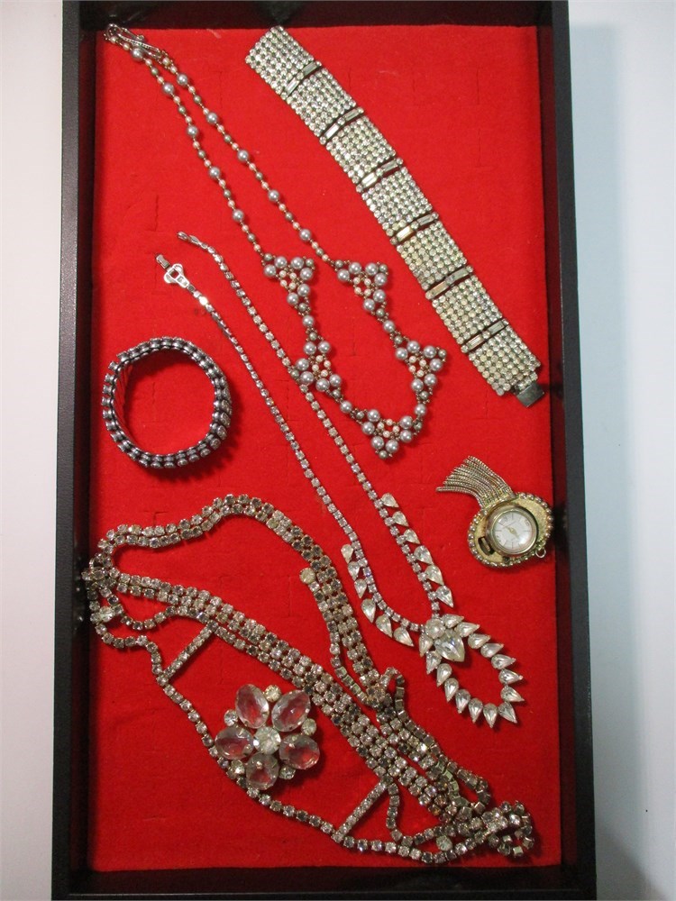 Collection of Vintage Rhinestone Costume Jewelry – Necklaces, Bracelets & Brooches