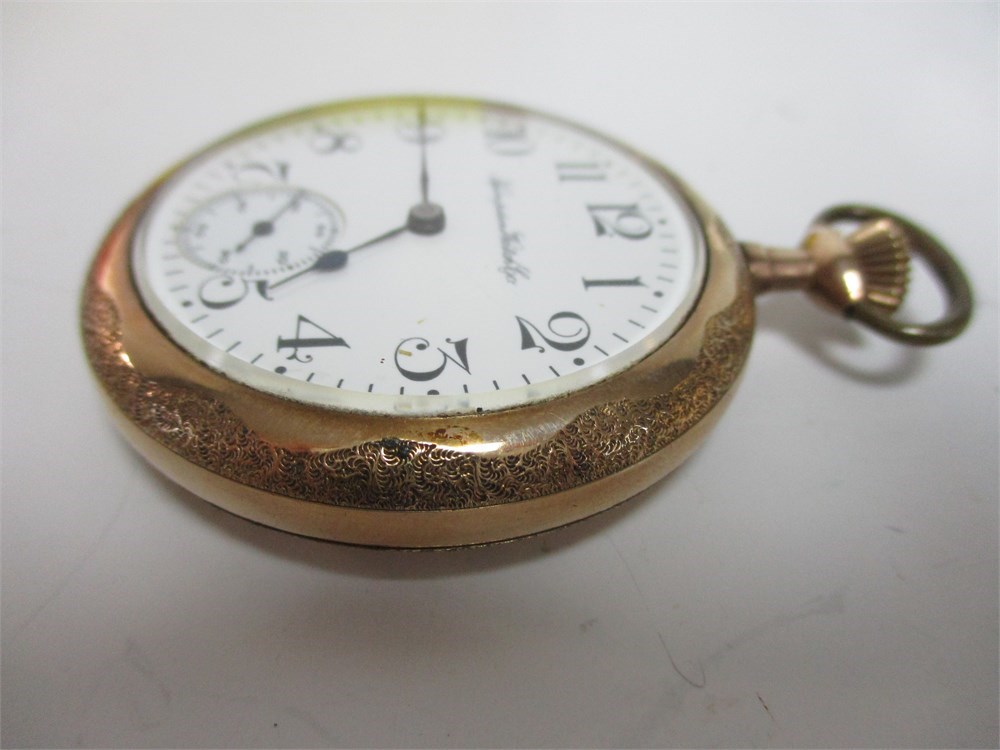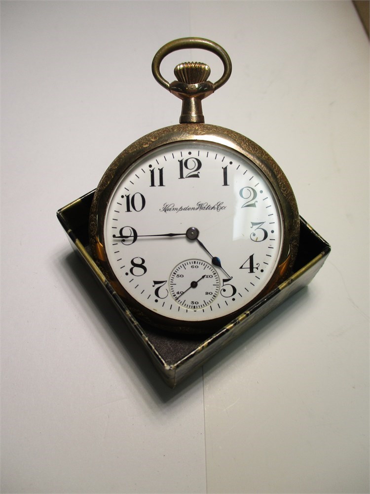Antique Hampden Watch Co. Pocket Watch – Gilt Case, Enamel Dial, Early 20th Century
