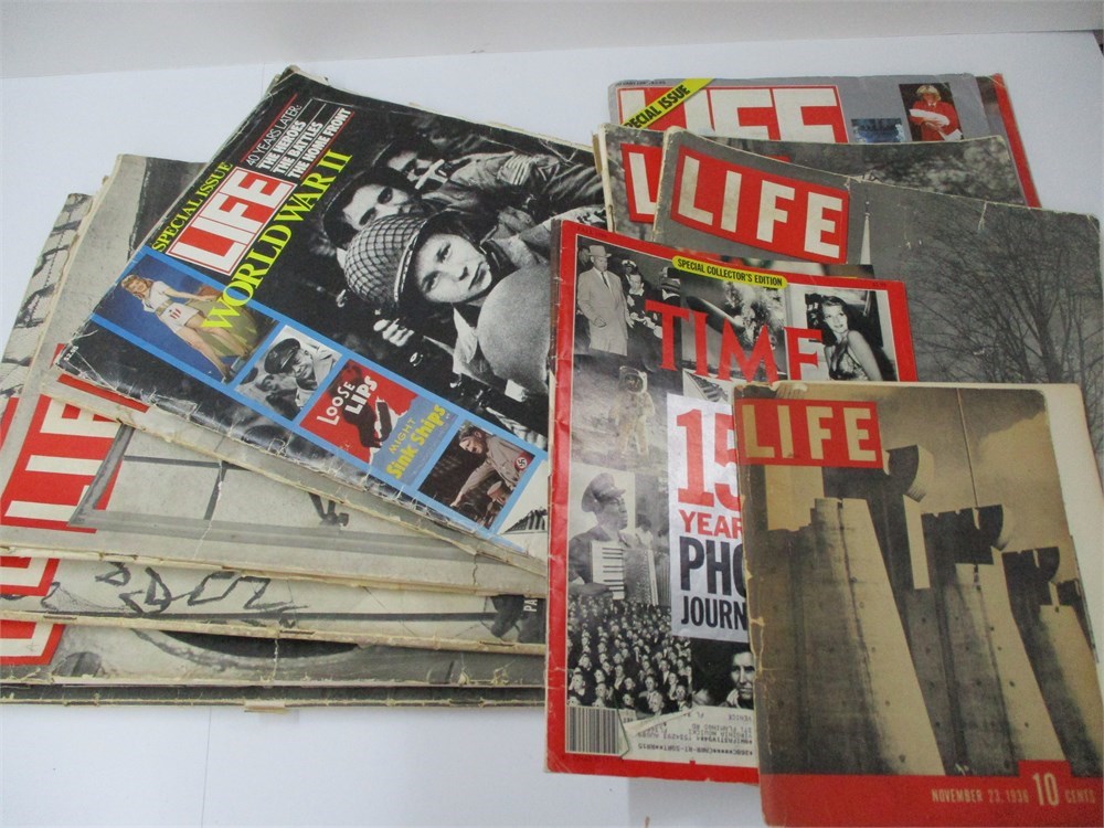 This Box Lot consists of 11 Vintage LIFE Magazines and one Time Magazine.  They are great for a look back in time.  All in fair condition.
