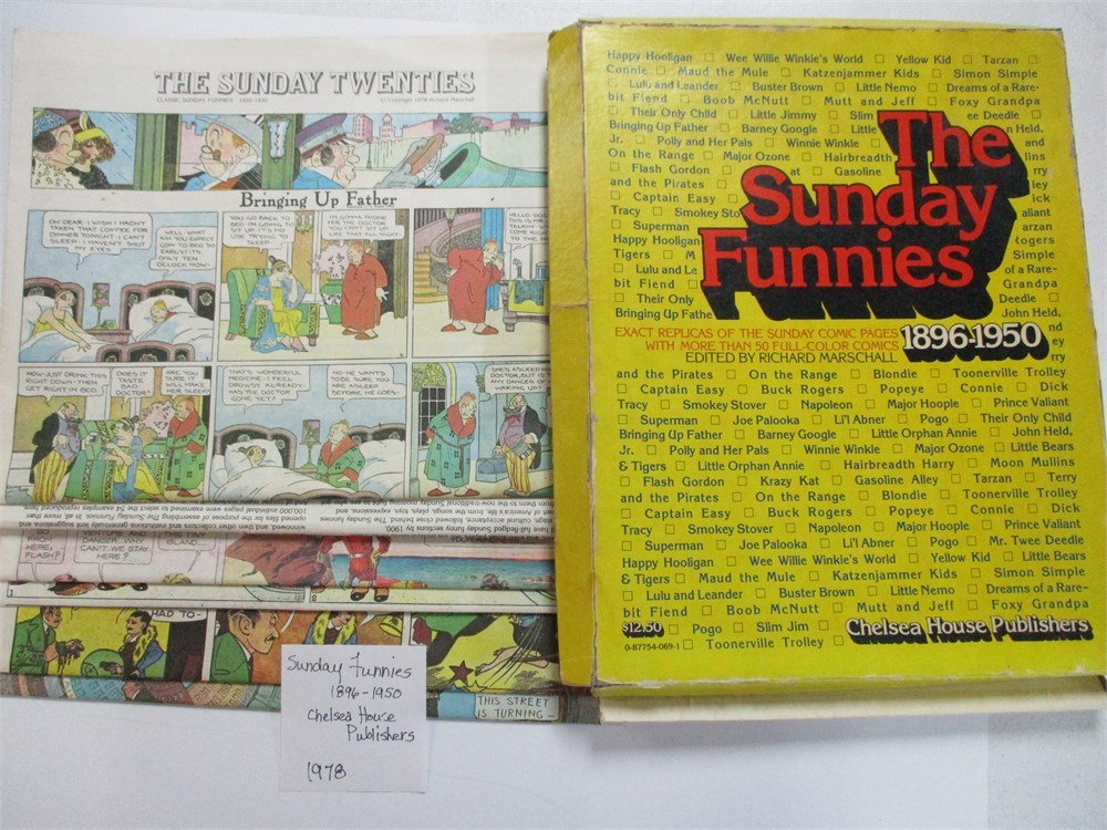 Box Lot of Vintage "Sunday Funnies" 1896-1950, exact replica's. Contains 6.  Chelsea House Publishers 1978.  The pages are in very nice condition but the box has some issues, however it kept the comics in very nice shape.