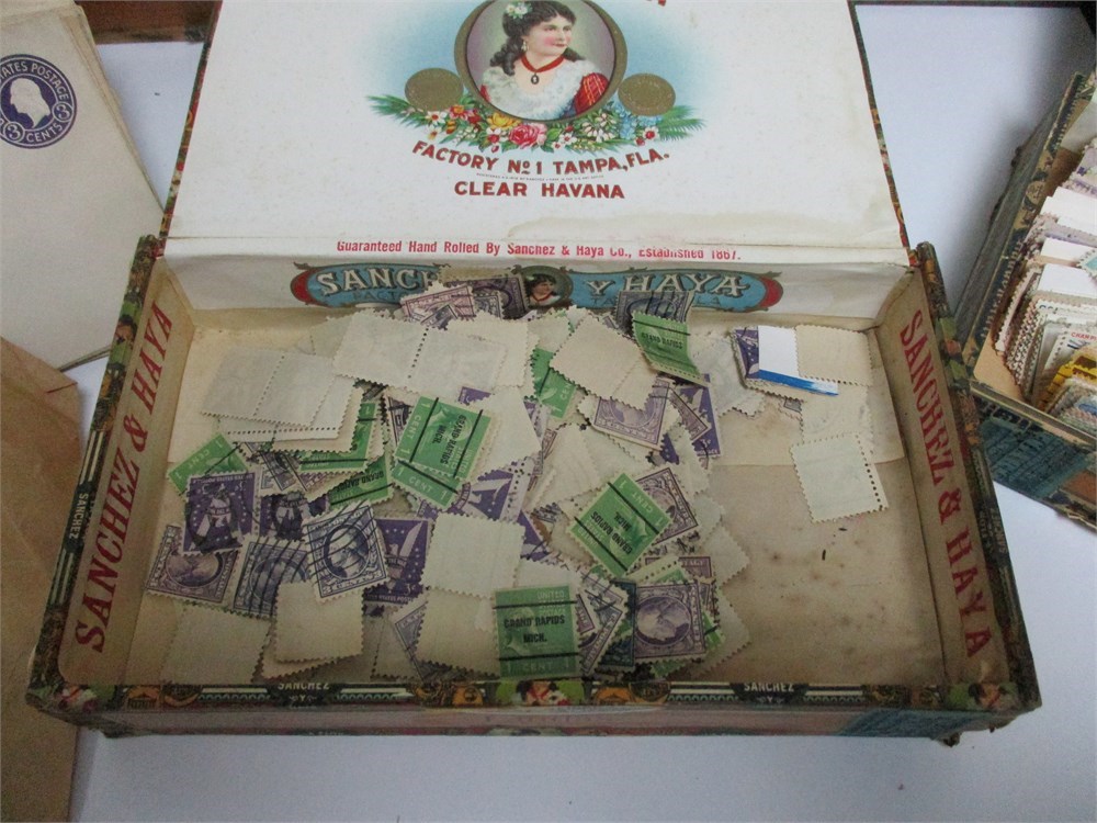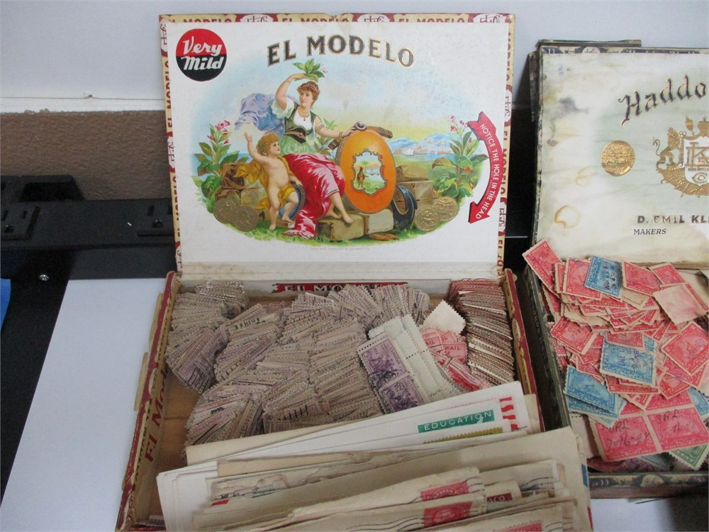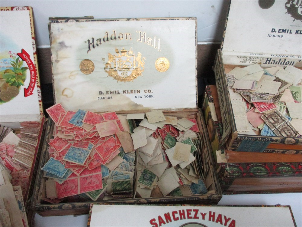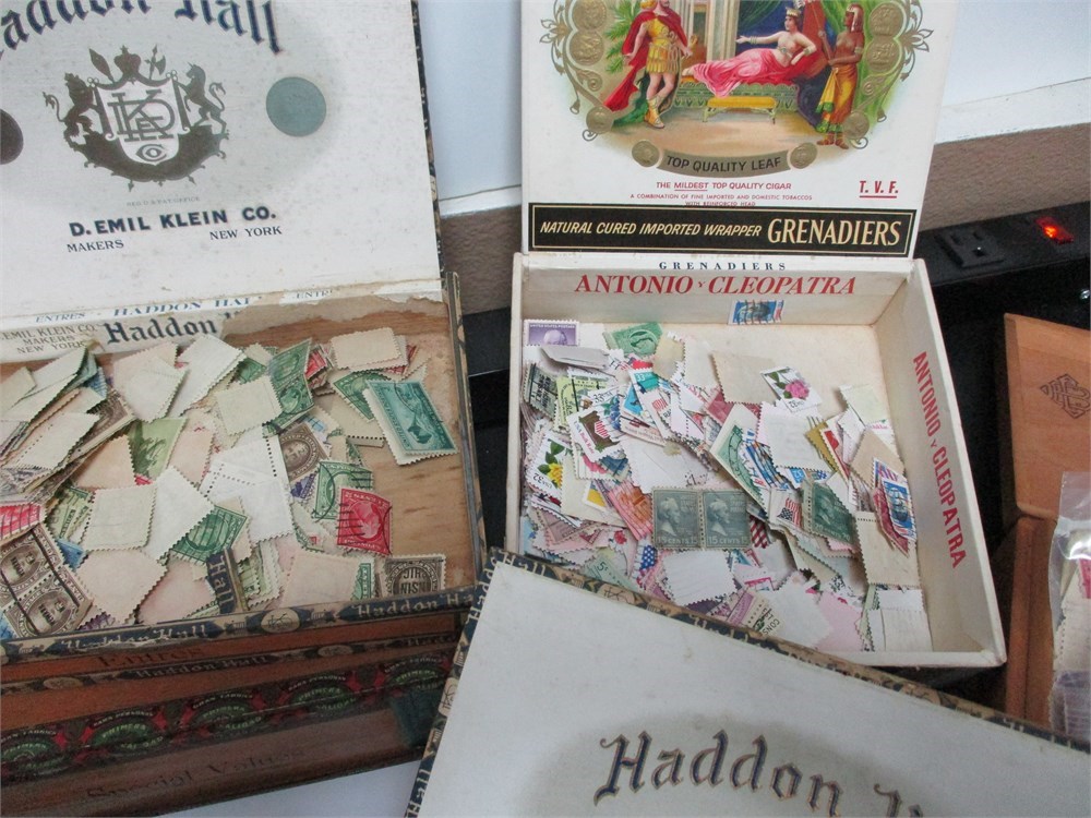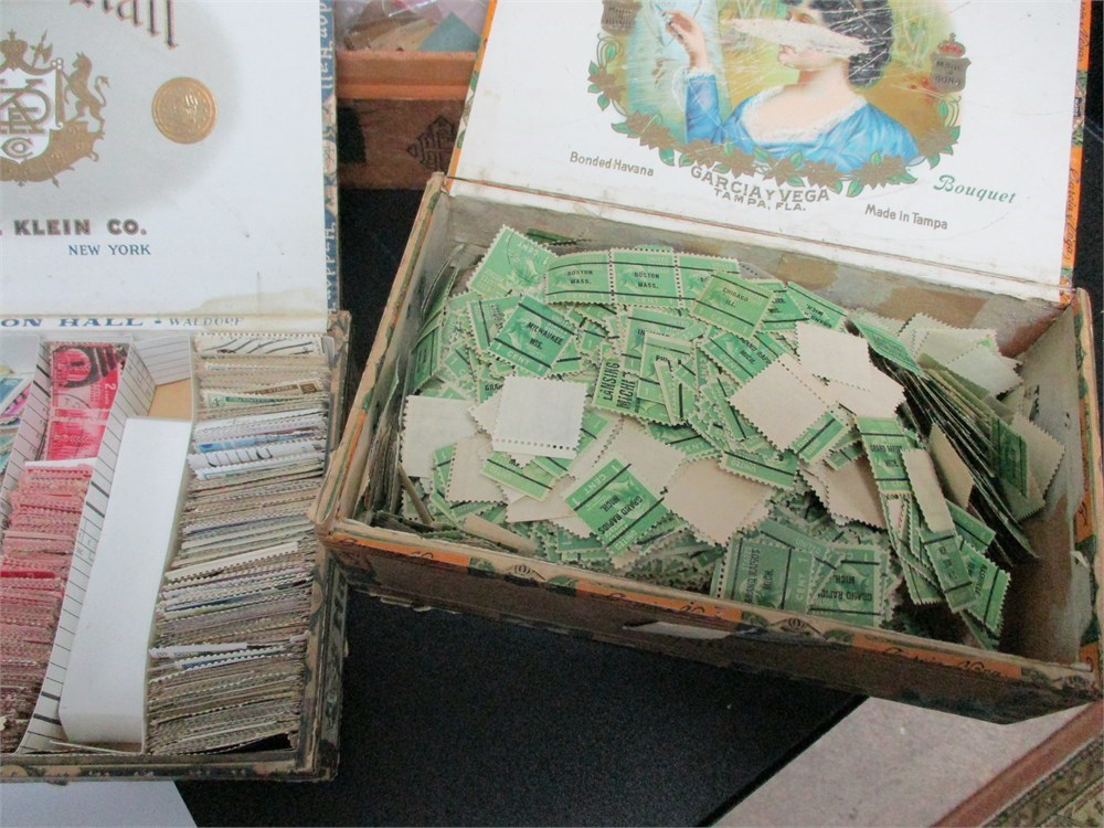 Vintage, HUGE Lot, Stamps in Cigar Boxes