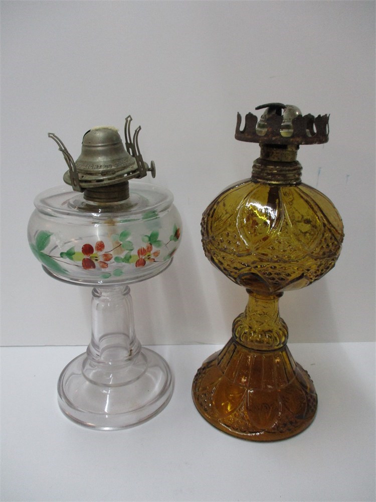 Vintage Lot of 2 Oil Lamps, No Chimney