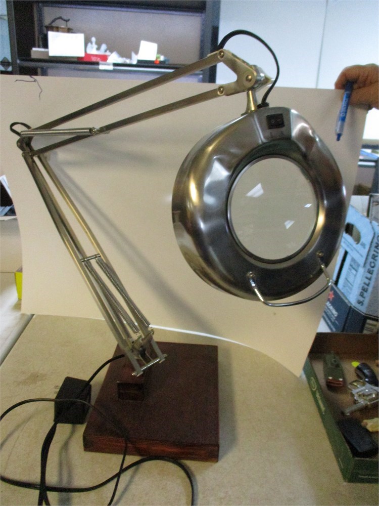 Vintage, Large Articulating Desk Lamp w/ Magnifier.  Good Condition.