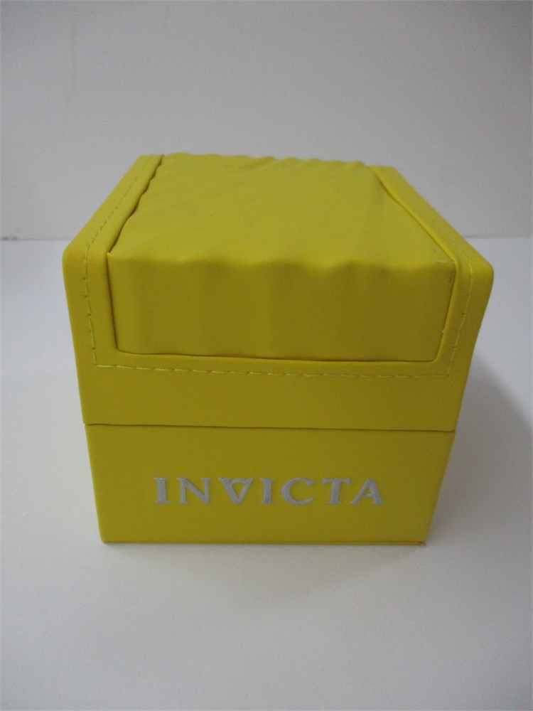 Condition: Pre-owned, excellent condition. Includes original Invicta yellow presentation box, instruction manual, hang tag, and warranty booklet. Minimal signs of handling; the watch appears gently worn or possibly unused.