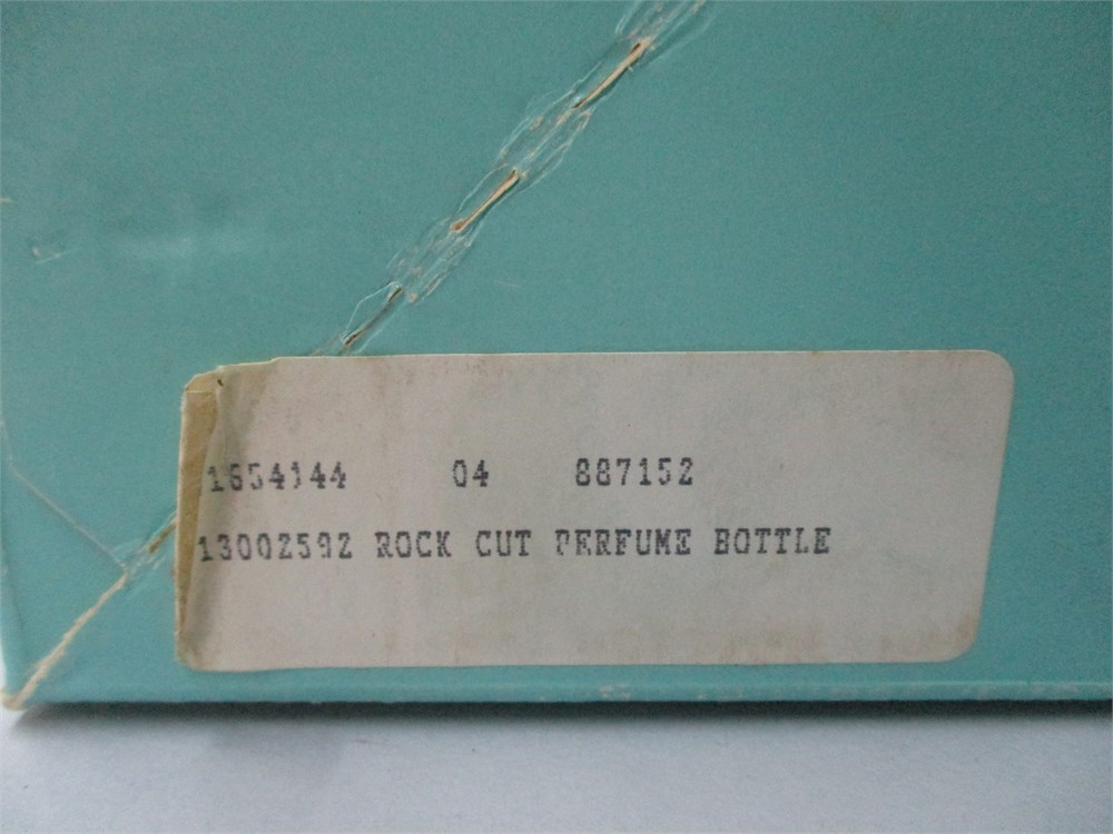 Stunning TIFFANY Rock Cut Crystal Perfume Bottle.  It is in fabulous condition.  Dauber is perfect.  It comes in the original box Tiffany Blue Box.  The box is in fair condition.