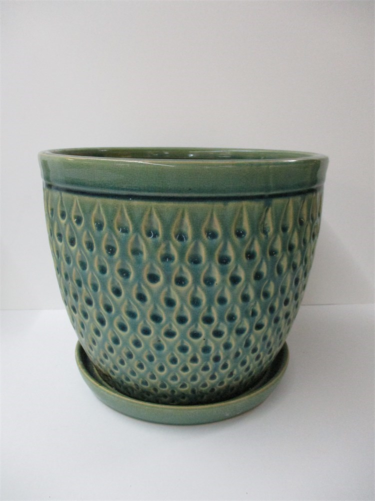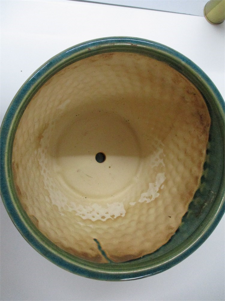 A vintage Blue Green Outdoor Pottery Planter.  In excellent condition. Measures 8.75" tall x 9.75" wide.