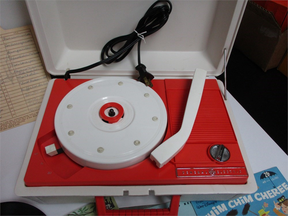 Vintage General Electric Portable Record Player Set with Children’s 45 RPM Records