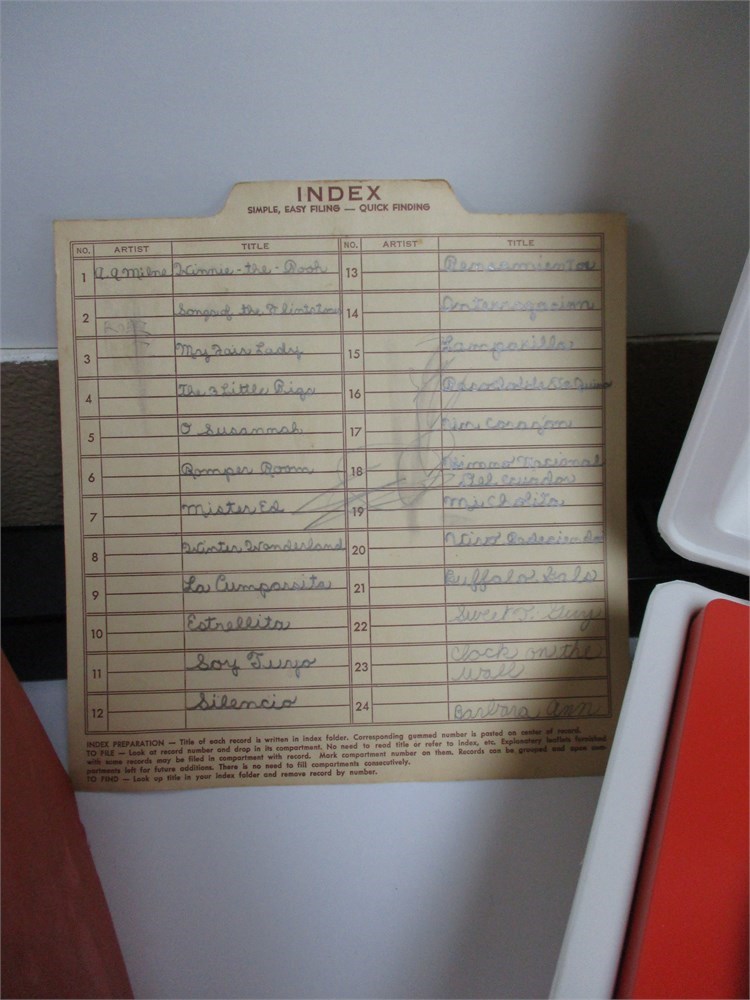• All housed in a red vinyl-covered record carrying case with metal latch and index card insert