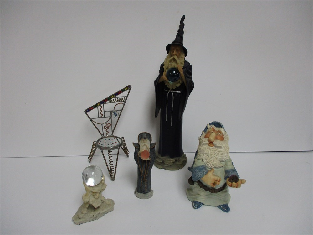 A Lot consisting a collection of Soli Deo Orkney Scotland Wizard Lot, all with original crystal orbs.  The tallest is 12" tall.  All in very good condition.