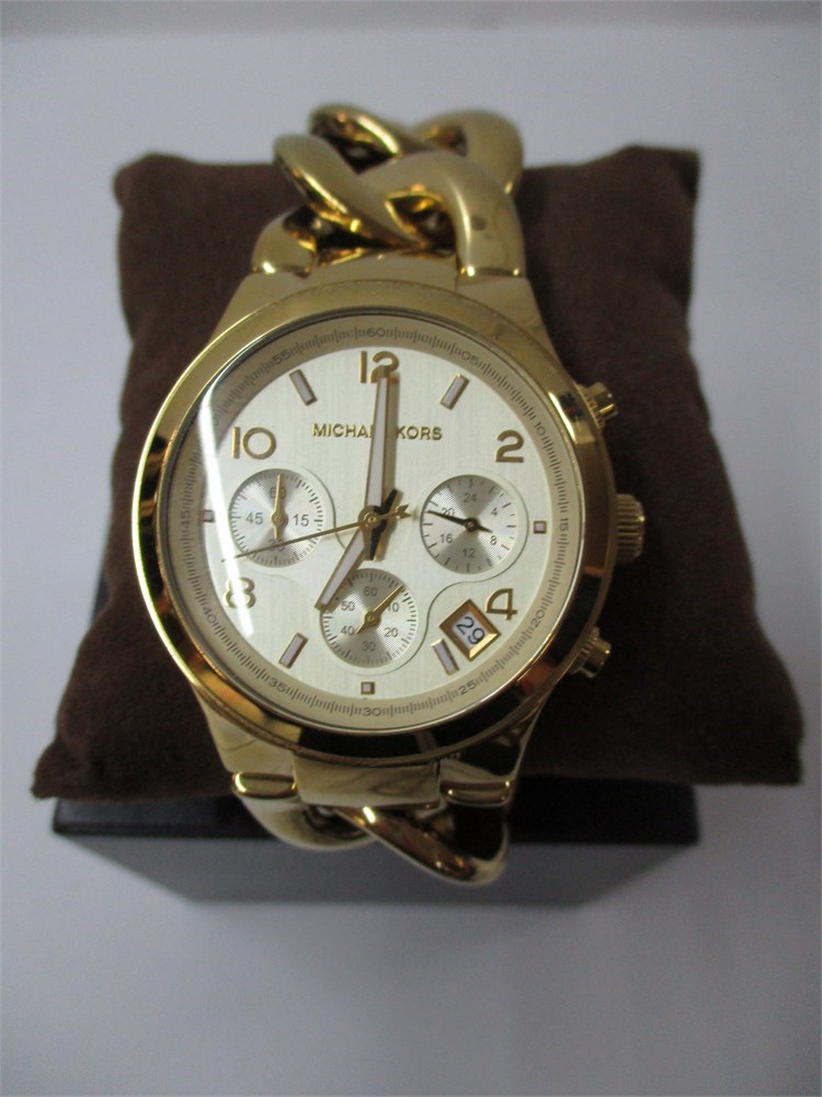 A Chunky Micheal Kors Men's Fashion Gold Tone Bracelet Watch.