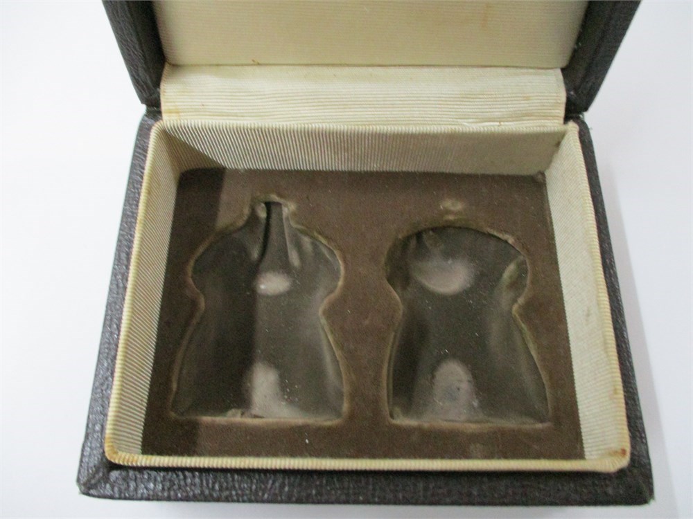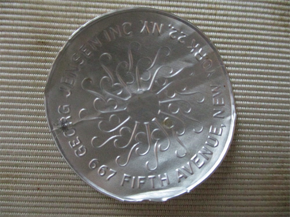A wonderful pair if George Jensen Salt Shaker and Pepper Grinder in Sterling Silver.  They come in their original box.  The inside lid has a sticker saying George Jensen, 667 5th Ave., NY.  They are tarnished and uncertain of the grinding mechanism. Circa 1950's