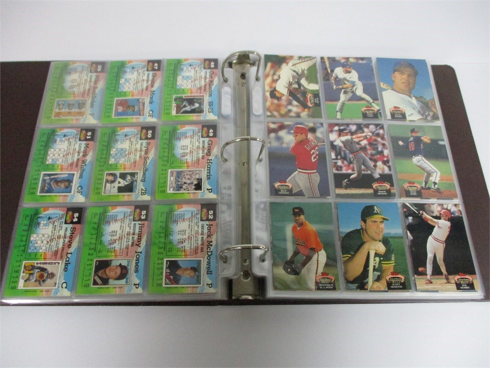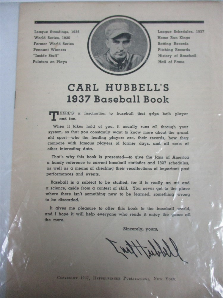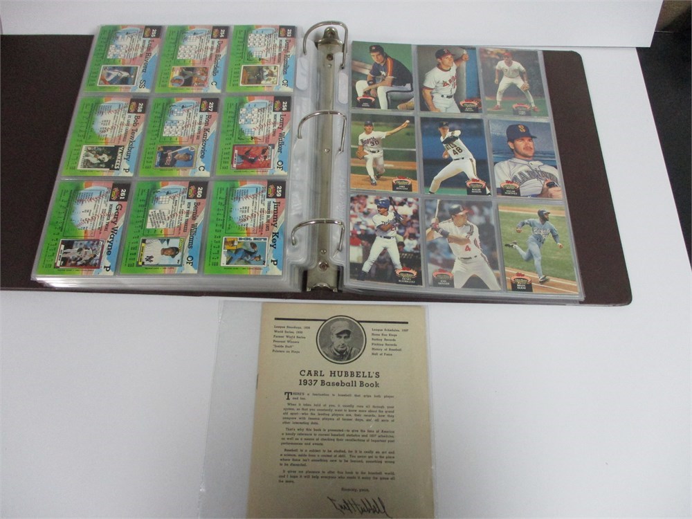A collection of vintage Baseball cards in binder and also Carl Hubbell's 1937 Baseball Book.  The cards are uncounted.