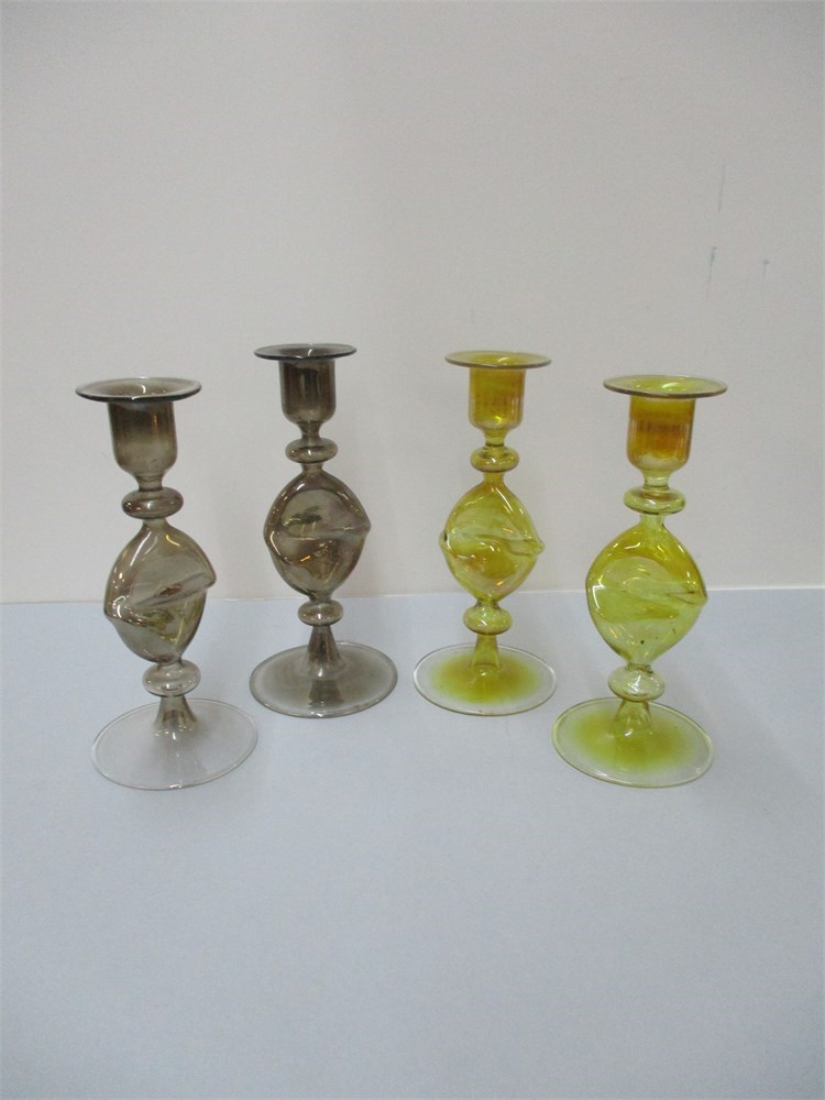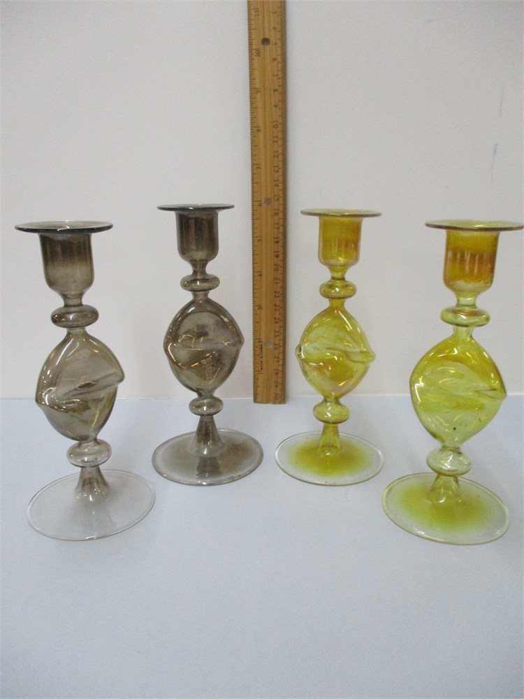 4 Beautiful Handblown Candlesticks in Amber and Gray