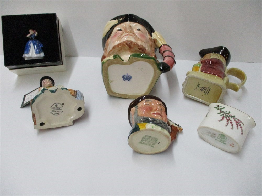 A vintage Collection of Royal Doulton Figurines and a miniature Lancaster Sandland Uncle Tom Cobleigh mug.  All in very nice vintage condition.  Largest piece measures 5.5" tall.