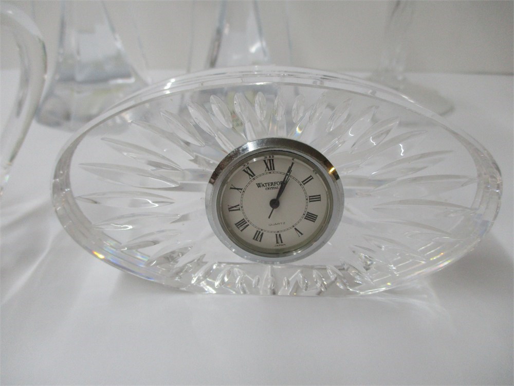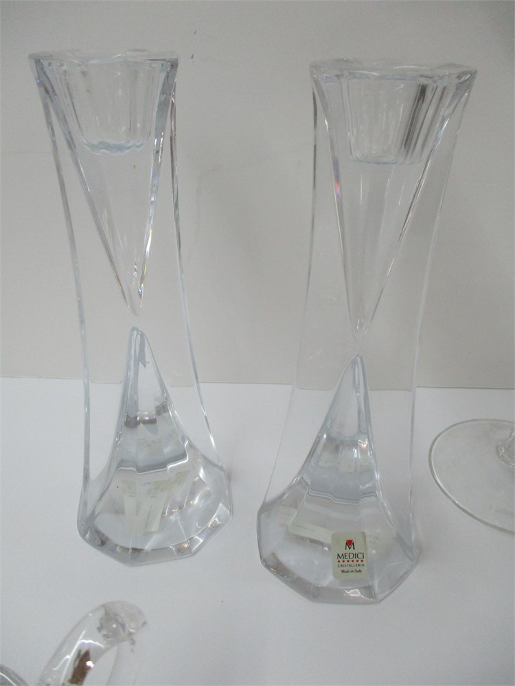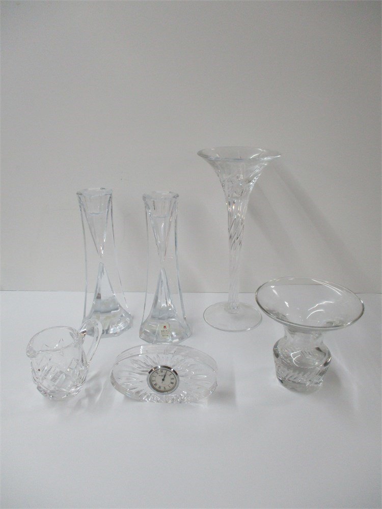 Gorgeous Glass Lot, Medici Candlesticks, Waterford Clock +