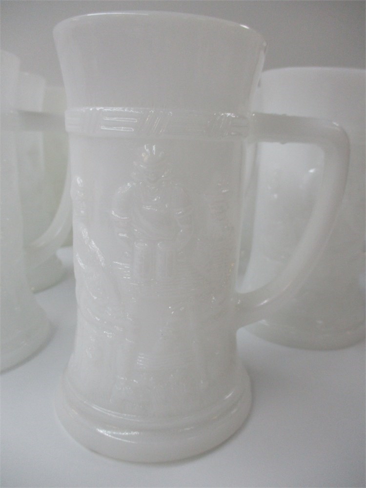 Wonderful Lot of Vintage Federal Milk Glass Beer Steins, Tavern Scene