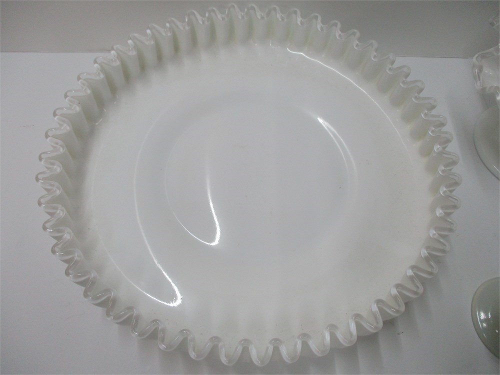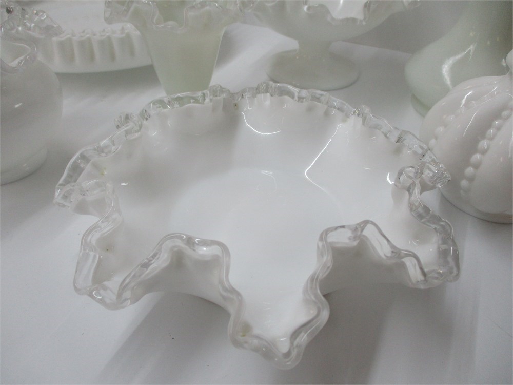 Vintage, 7 Piece Lot, Fenton Silvercrest Ruffled Milk Glass