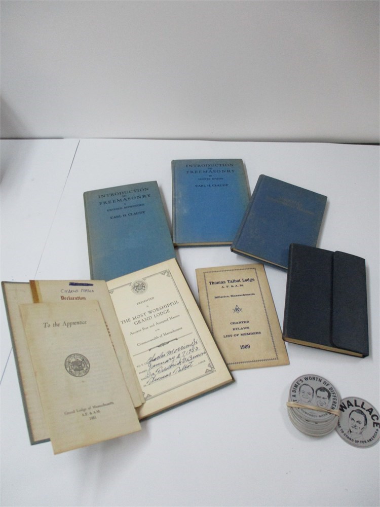 This lot consists of 5 Freemason's books, including a Cipher, 1940's, 1950's and 1960's. plus approximately 30 Humphrey/Nixon collectibles.  All in good condition.
