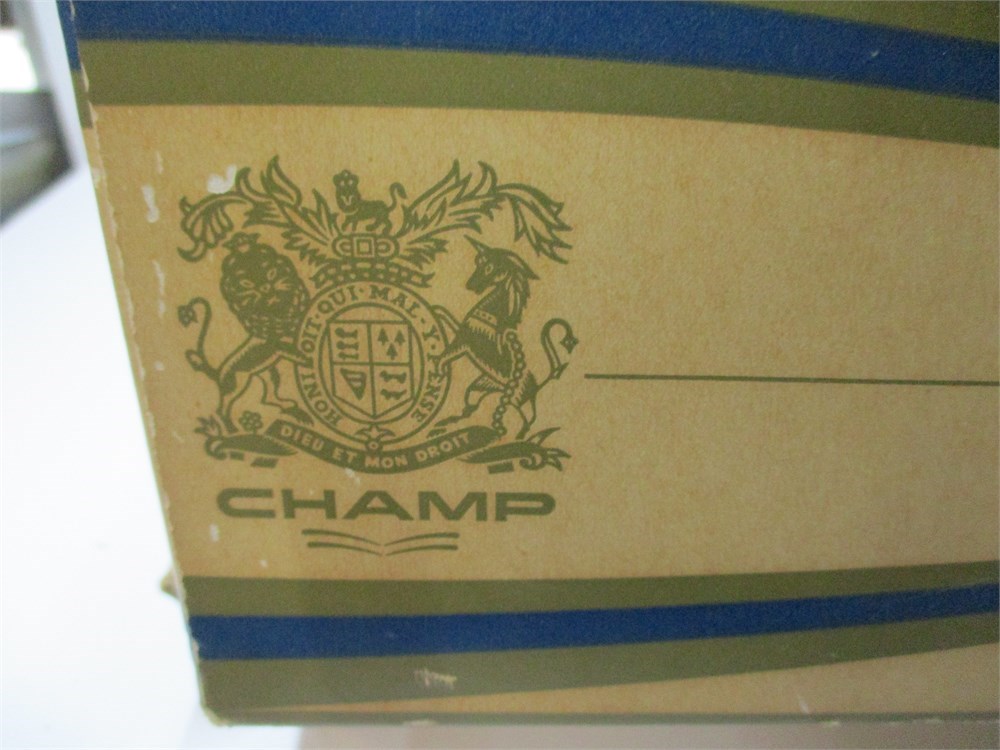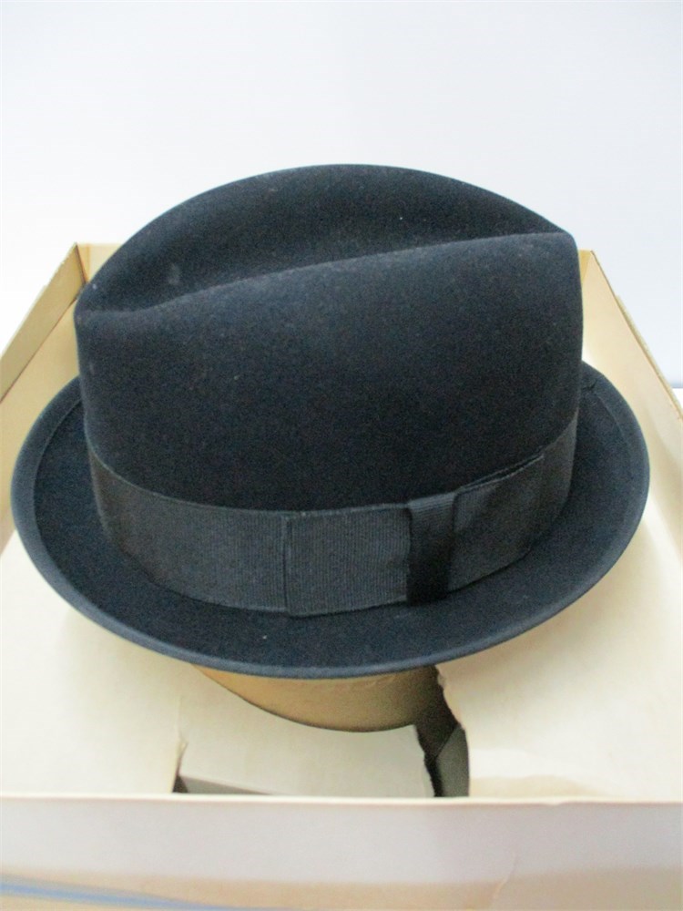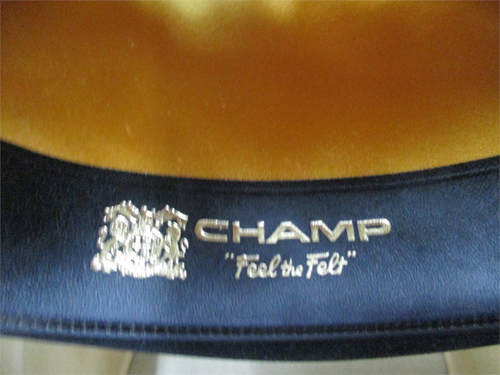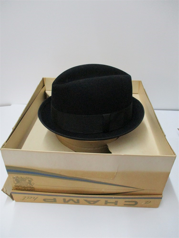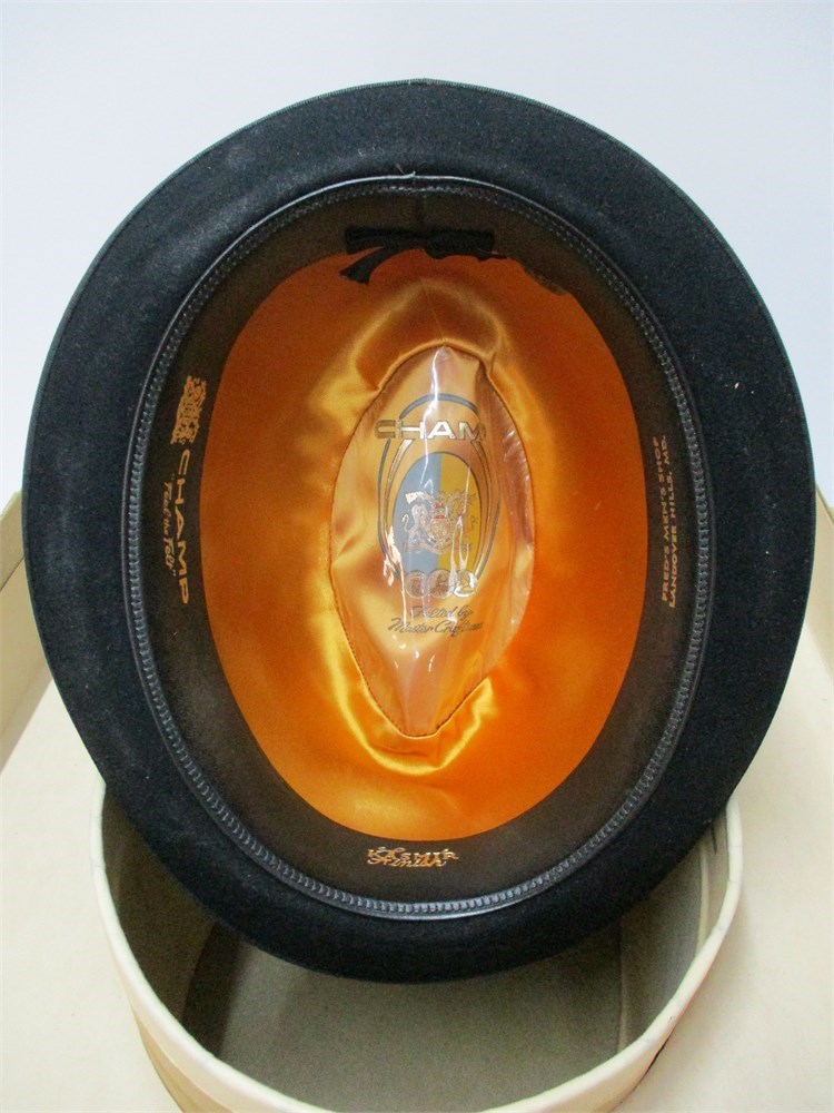 A wonderful vintage "Champ" Hat in the original box.  It is in great shape, hardly used.  Beautifully lined and labeled.  It fits a 6 7/8 head.  These hats are making a comeback! The box has some issues.