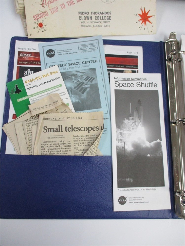 This grouping consists various articles and a binder full of Nasa information. Very informative !  This includes the briefcase.
