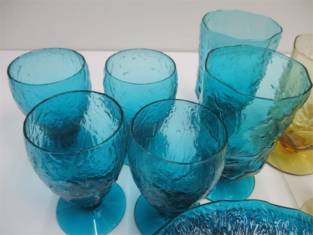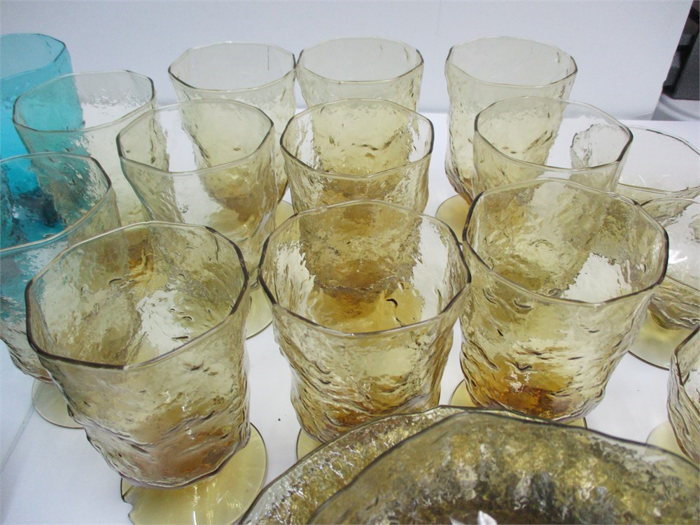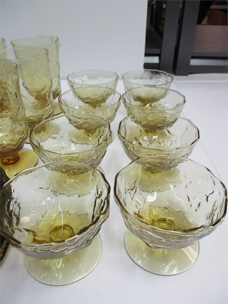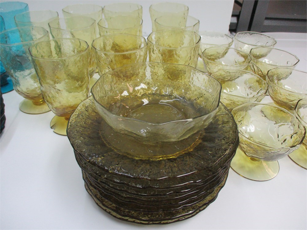 Vintage, Empoli Italian Art Glass Tableware Lot, 40 Pieces, Amber & Turquoise