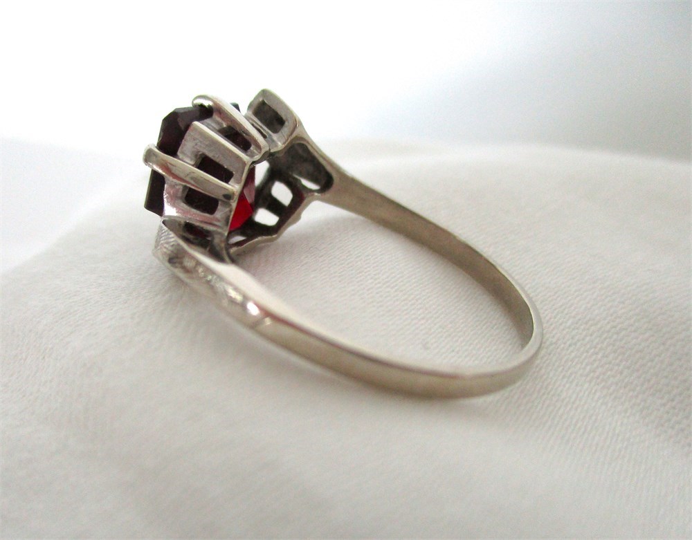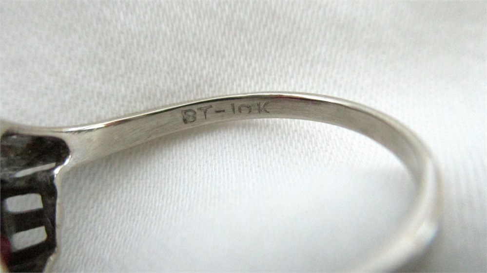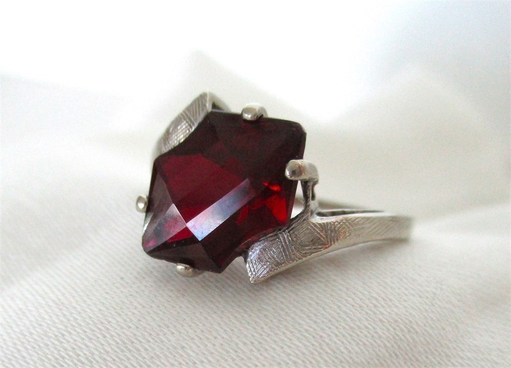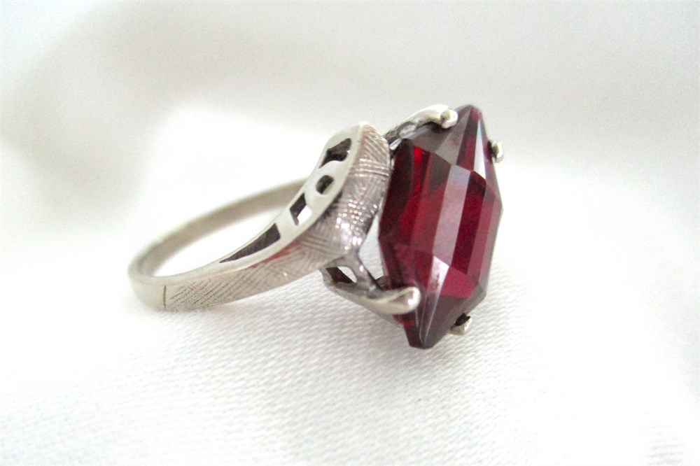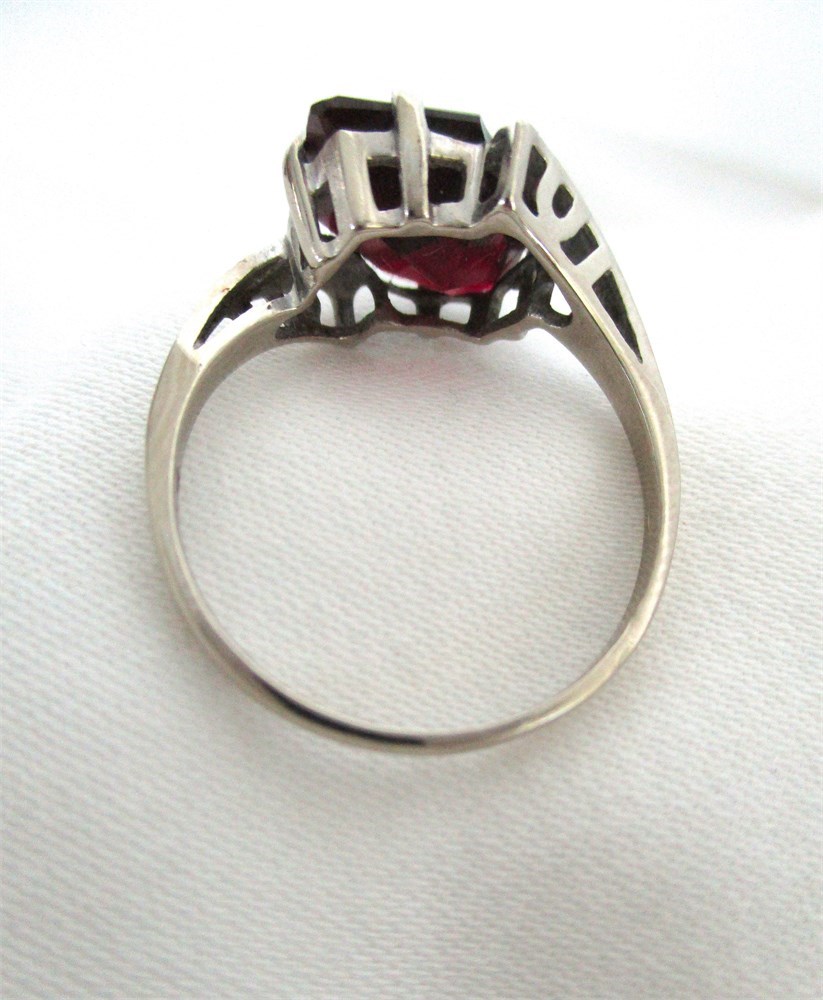 Vintage, 10K White Gold and Garnet Ring, Size 8