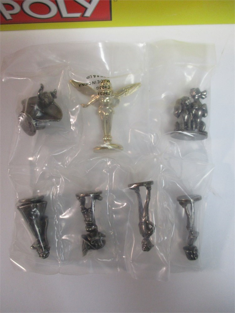 This is a vintage 2009 Monopoly Disney Edition Board Game complete with all original pieces still in sealed pouches. The outside of the box has some discoloration.