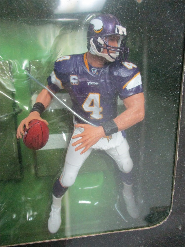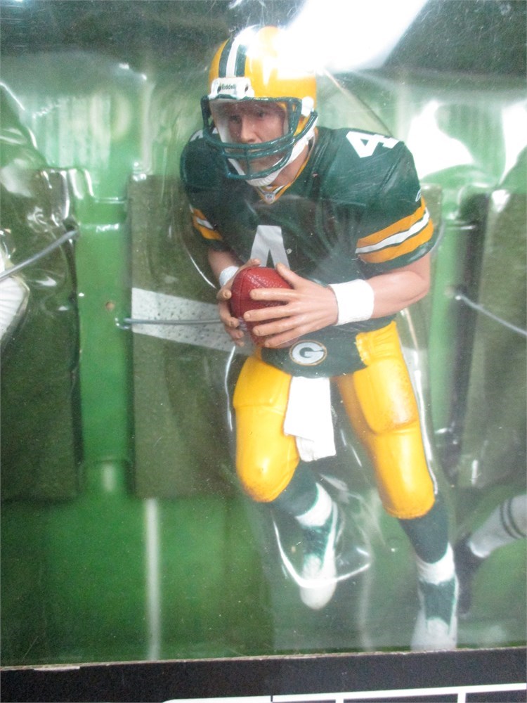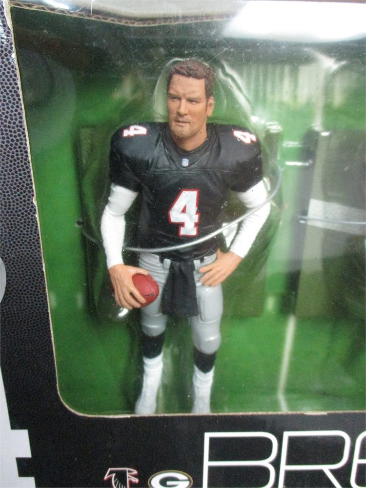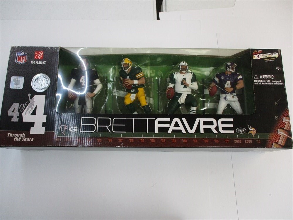 This is McFarlane Toys "Brett Favre Through the years - 4 figure set.  the set includes action figures of Brett Favre in the uniforms of the four teams he played for during his NFL career.  The Atlanta Falcons, Green Bay Packers, New York Jets and the Minnesota Vikings. The box is unopened and all in original unused condition.