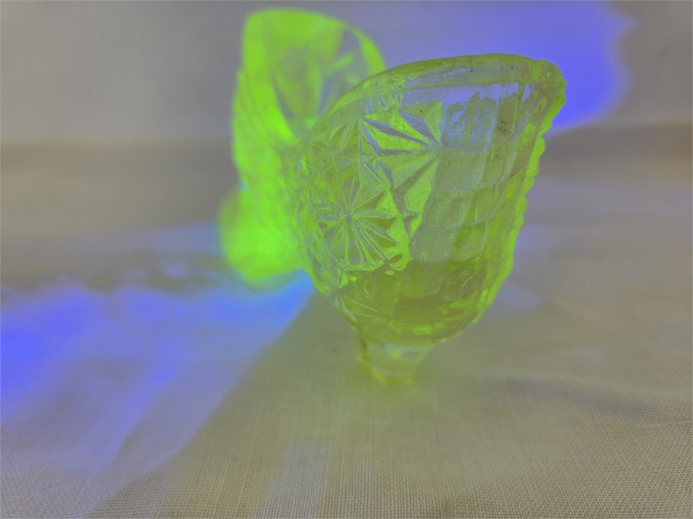 A classic collectible from the Boyd Glass Company, combining whimsy, craftsmanship, and the magic glow of uranium glass.