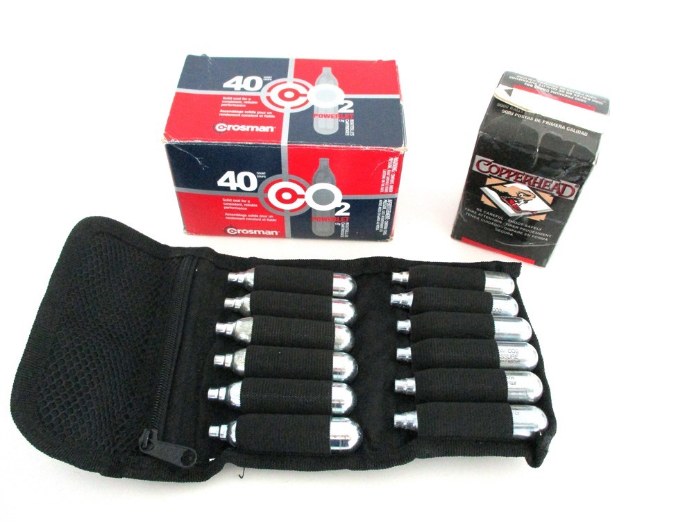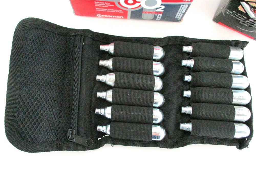 This lot consists of 22 Total CO2 Cartriges, 10 in the Box and 12 in the Camouflage Case and a Large resealed box of BB's.  The's Box of BB's had broken open so it is resealed.