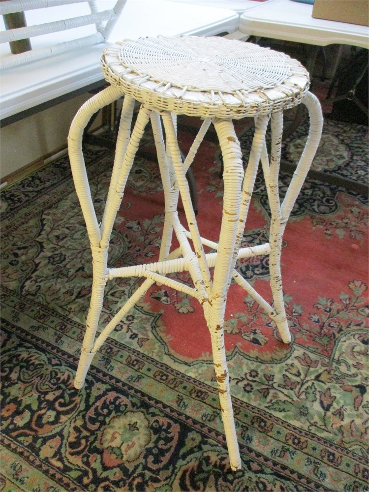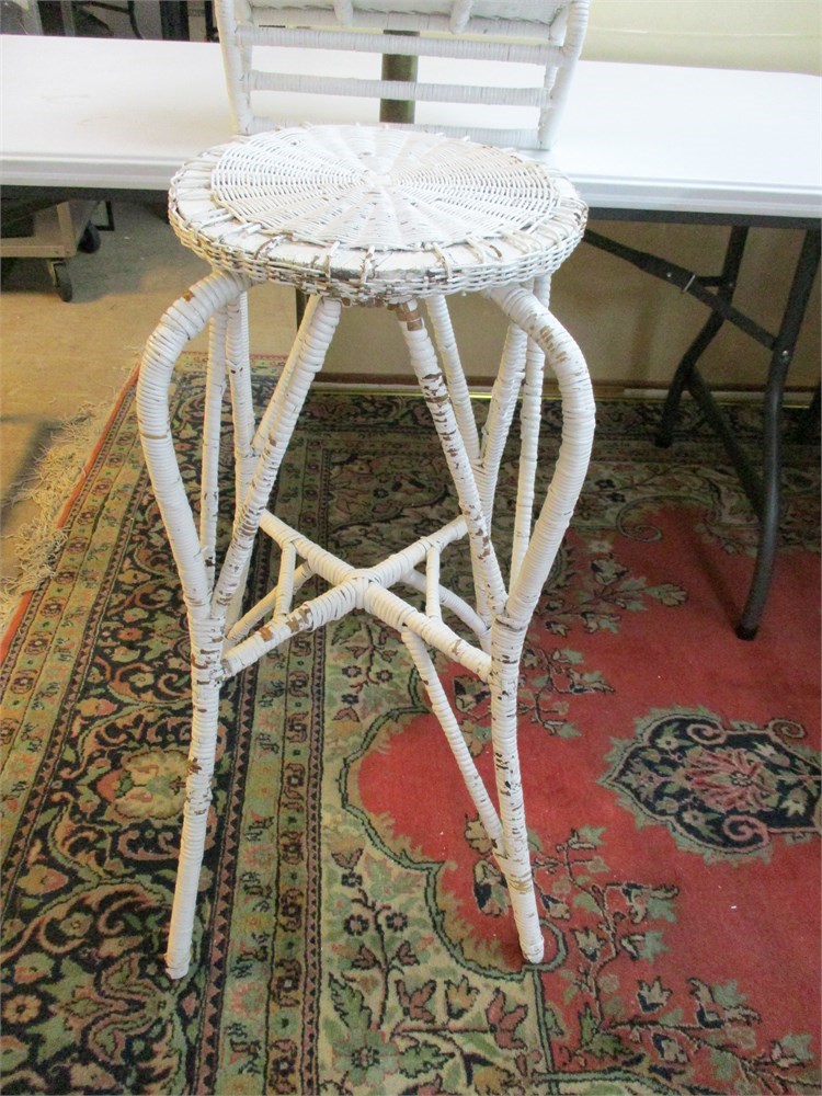 Vintage, Painted Wicker, Plant Stand and Wall Shelf