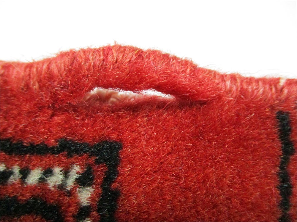 This is a vintage "Cha Bafat" Hand made prayer rug made in Pakistan.  It measures 38" long x 25" wide.  Nice colors, small tear on edge.