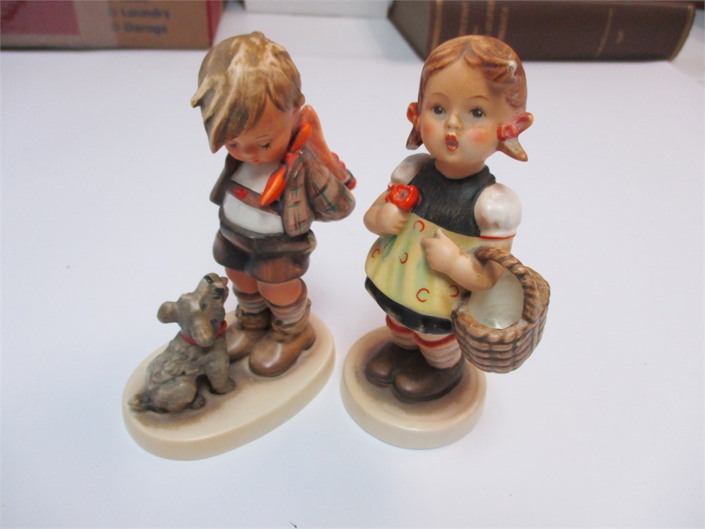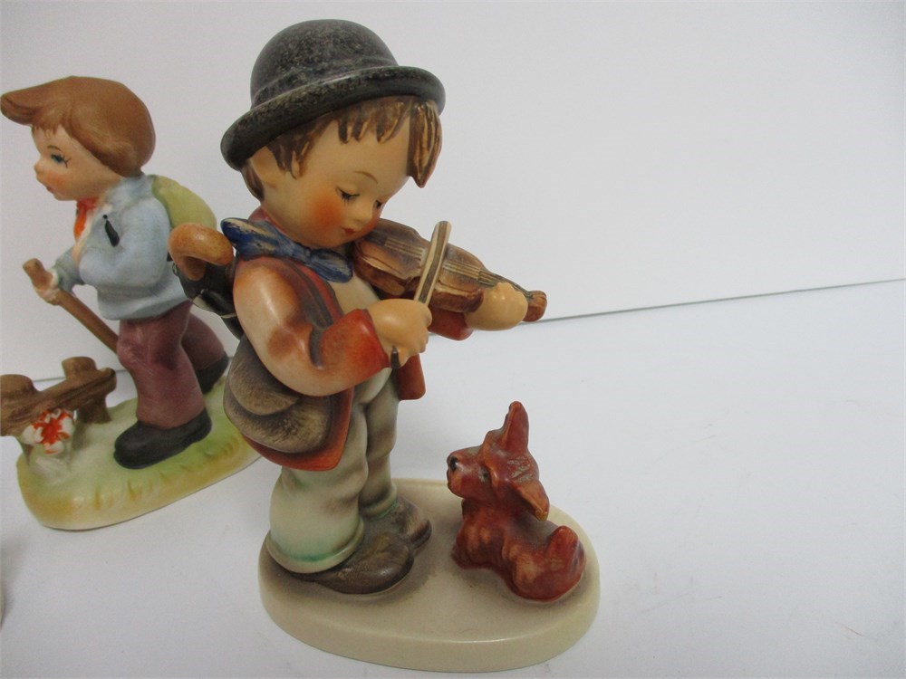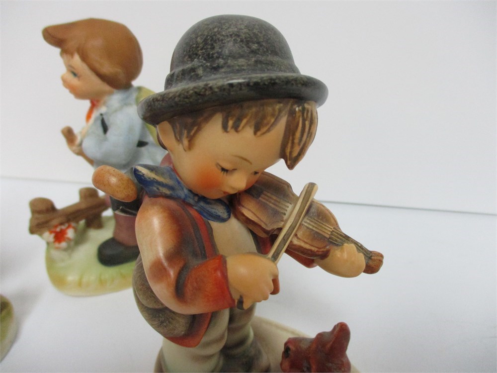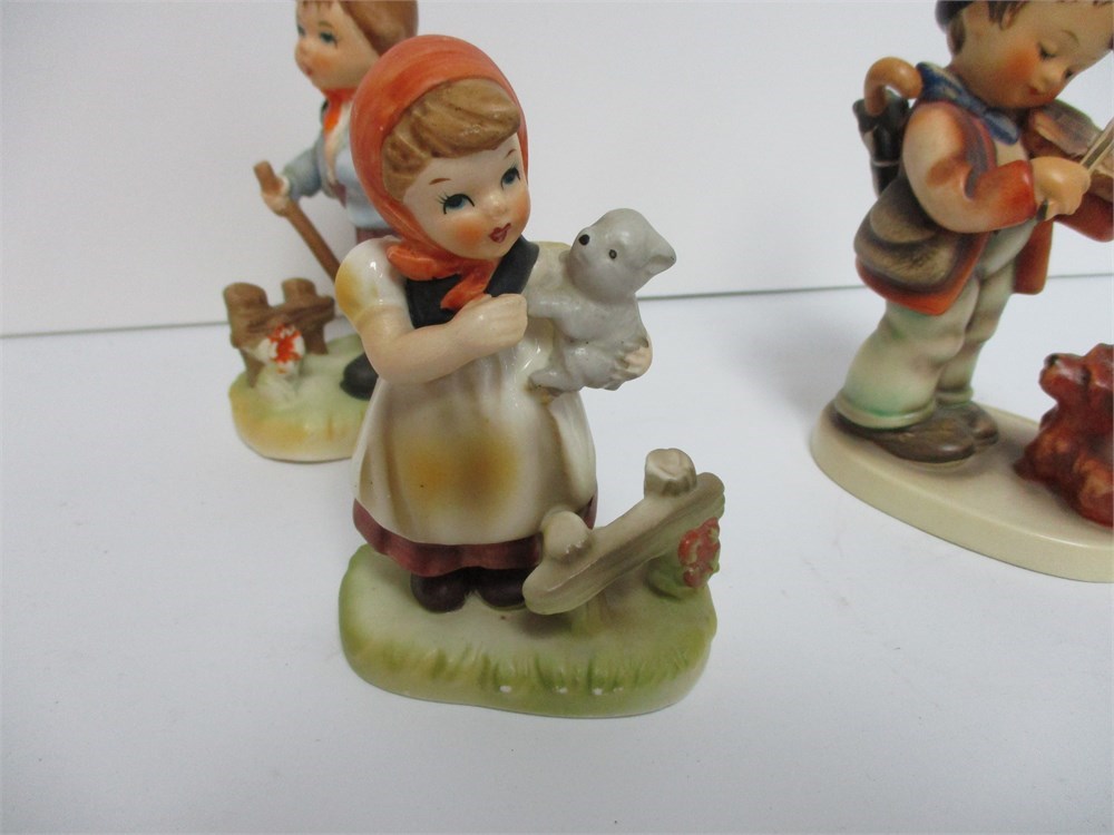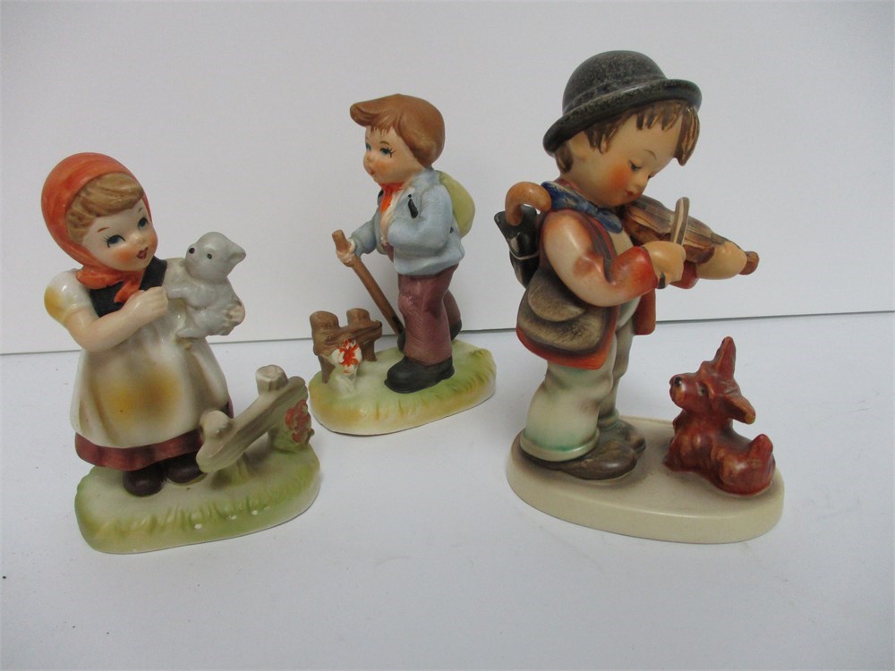 This lot consists of one Hummel and 2 Hummel-like figurines.  All in very nice vintage condition.  Nice colors and detail. Bonus...2 Hummel's with some damage, see last picture.