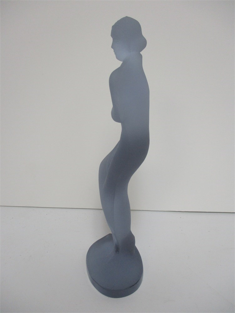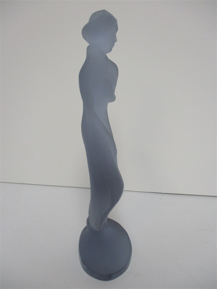A Beautiful Statue by "Daum", called "Daughter".  It is in excellent condition in a soft lavender frosted Pate-de-Verre glass. It stands 9" tall, circa 1990's.