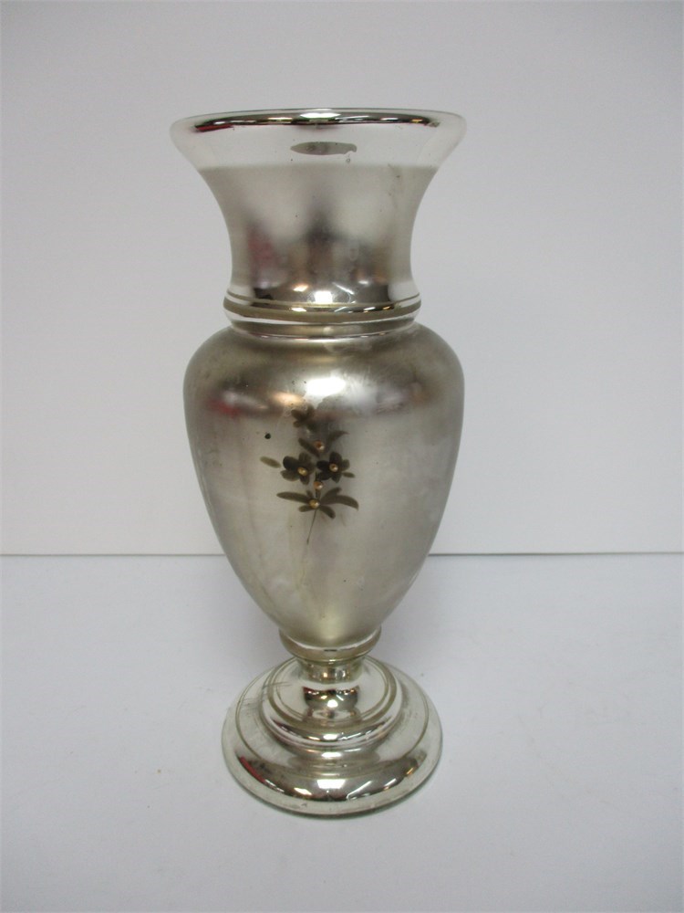Antique, Bohemia or Czech, Hand-painted Mercury Glass vase 1880's