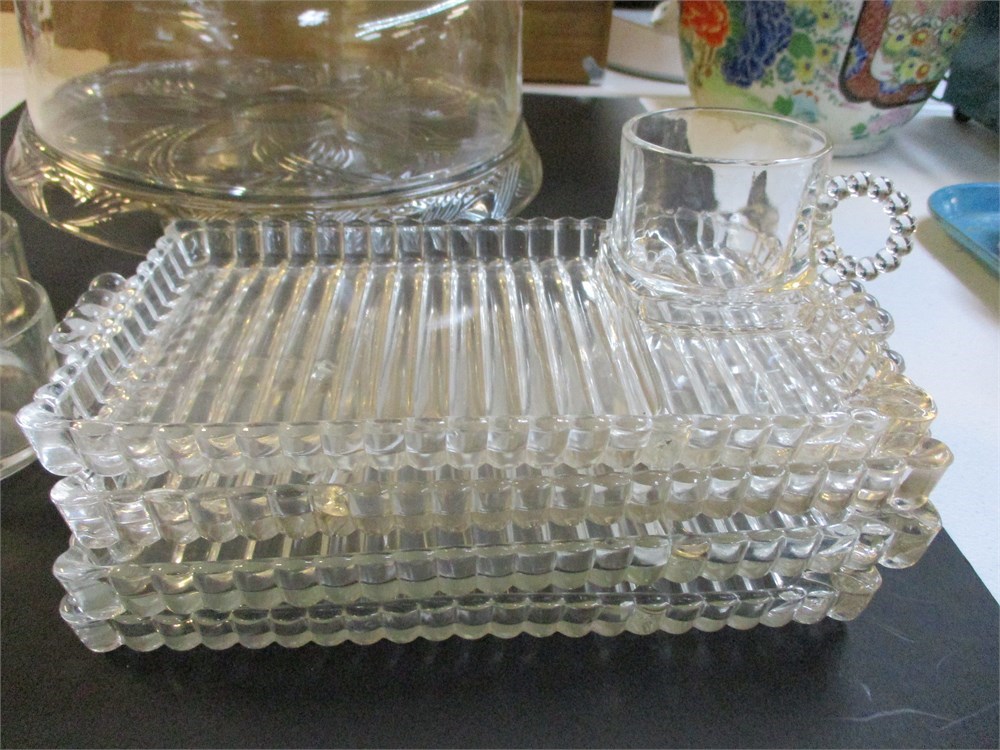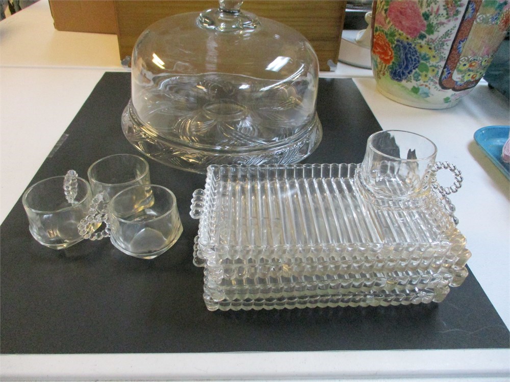 Vintage, Atlas Glass Snack Set & Cake Plate w/ Dome