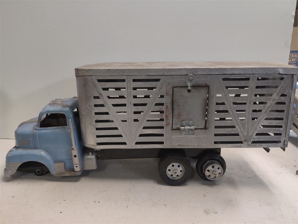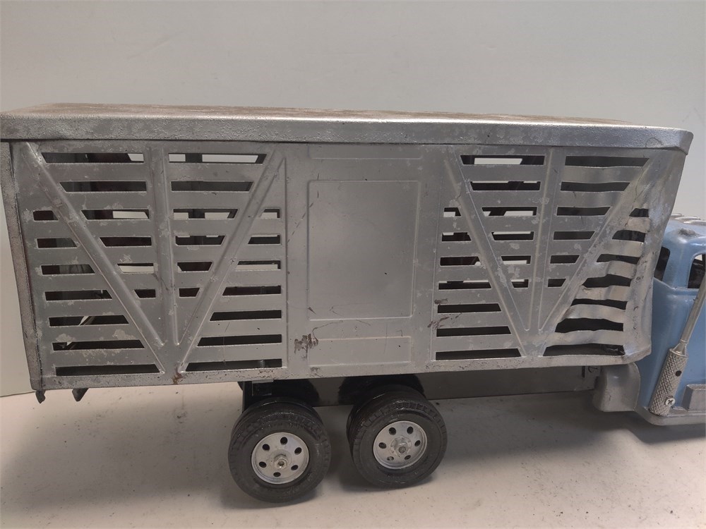 Vintage Marx Livestock Truck. This item is for parts or repair. Or to continue customizing. Missing friend axle and both wheels and tires. Missing one tire on the back. Please see pictures.