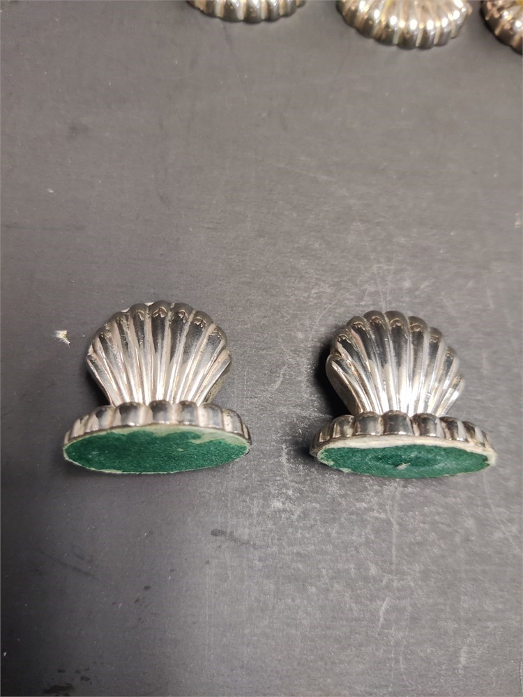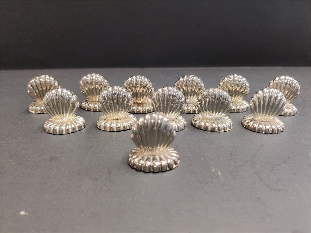 12x Antique Mini Napkin Holder Handmade Seashell Silvertone Sea Shell.