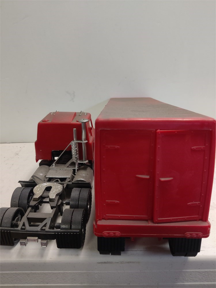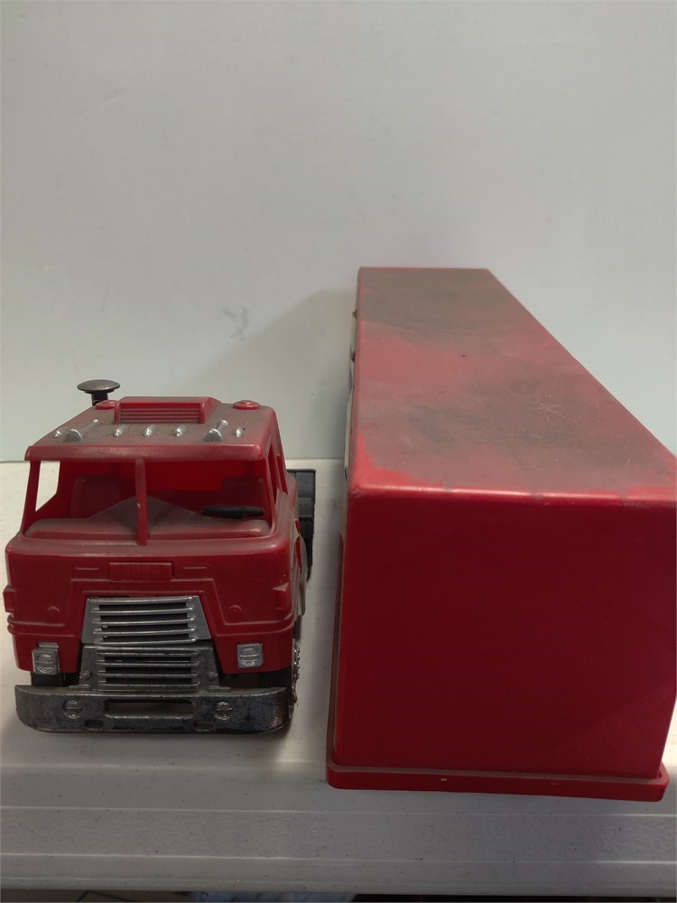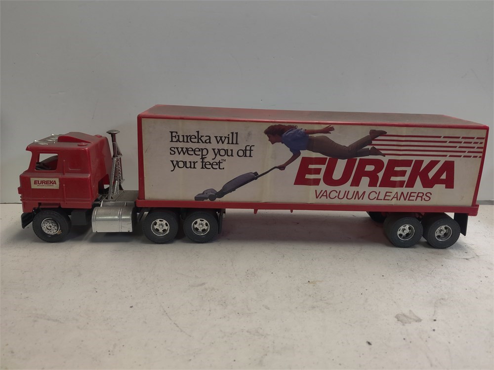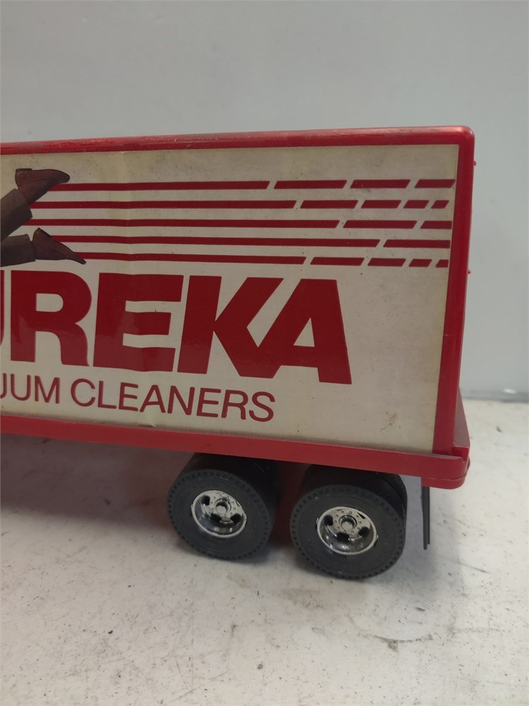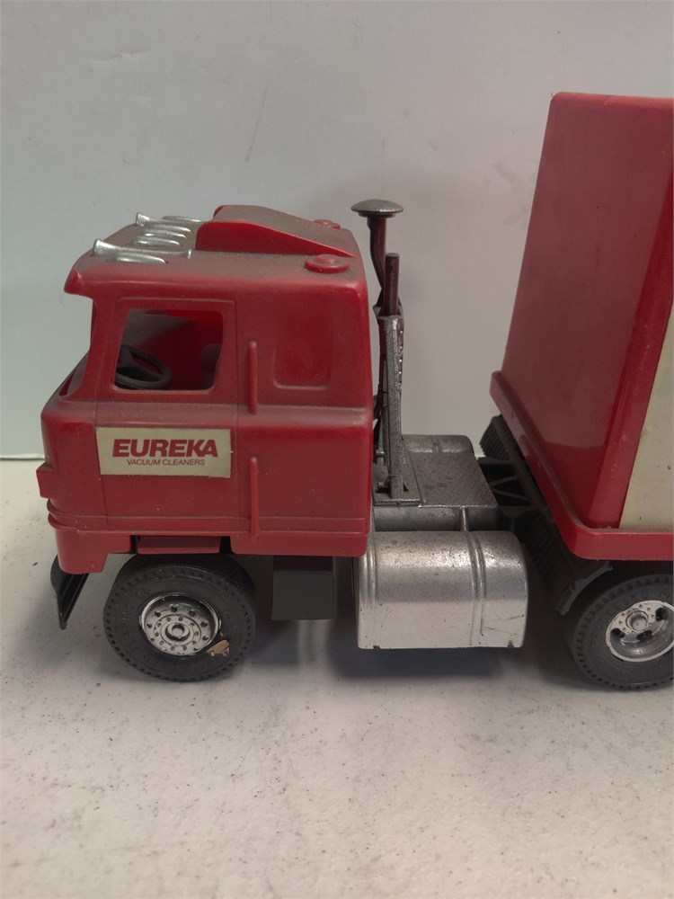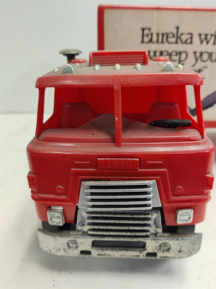 Tim Mee Toys - Red Plastic EUREKA VACUUM CLEANERS  Semi Truck & Trailer.