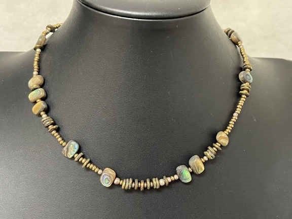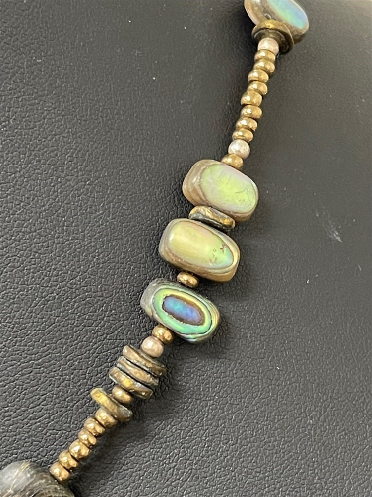 Abalone Bronze Seed Beads Sterling Silver Necklace