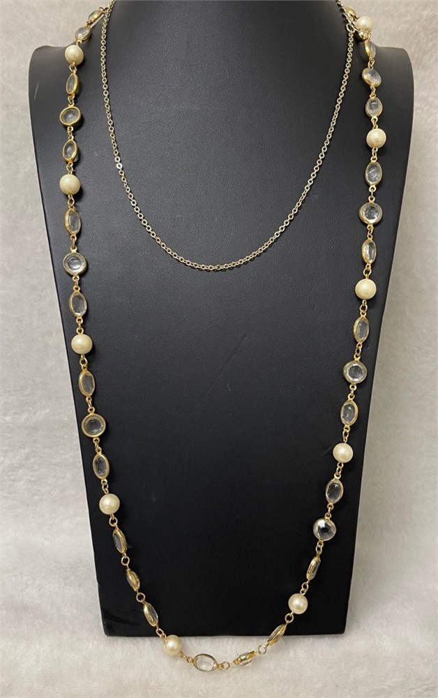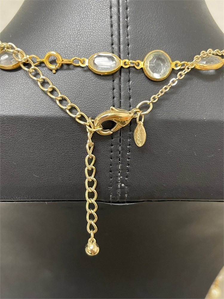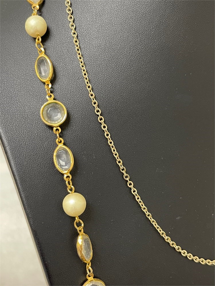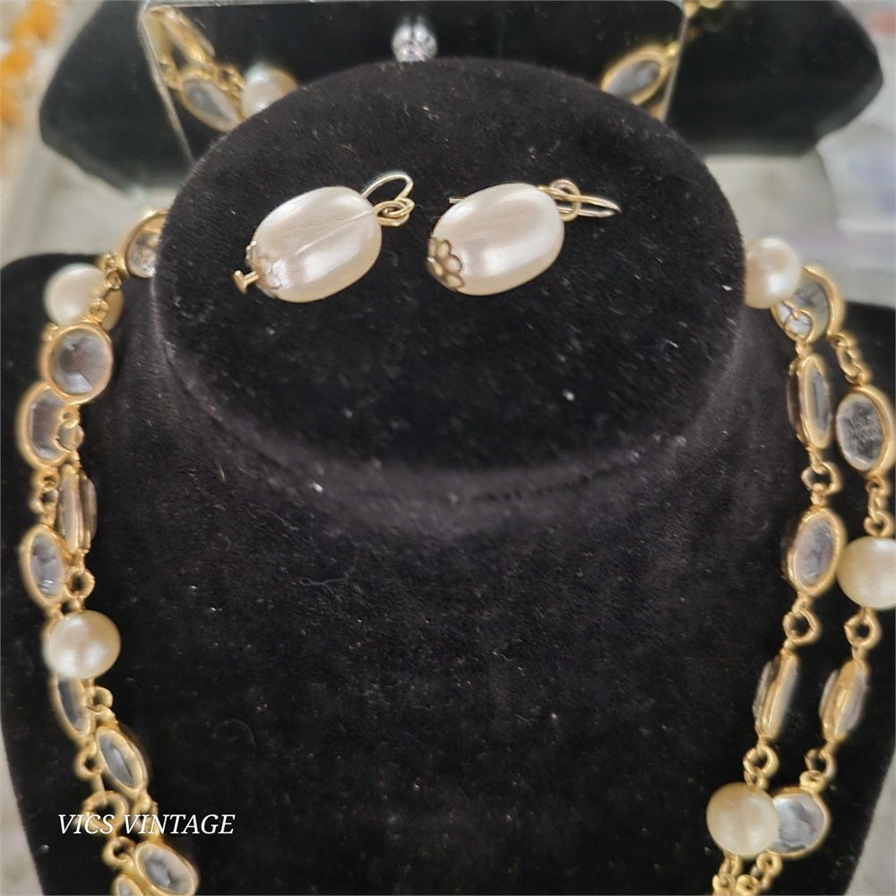 Gold-toned Chain from Chico's ~ pearls & glass stones & Earrings