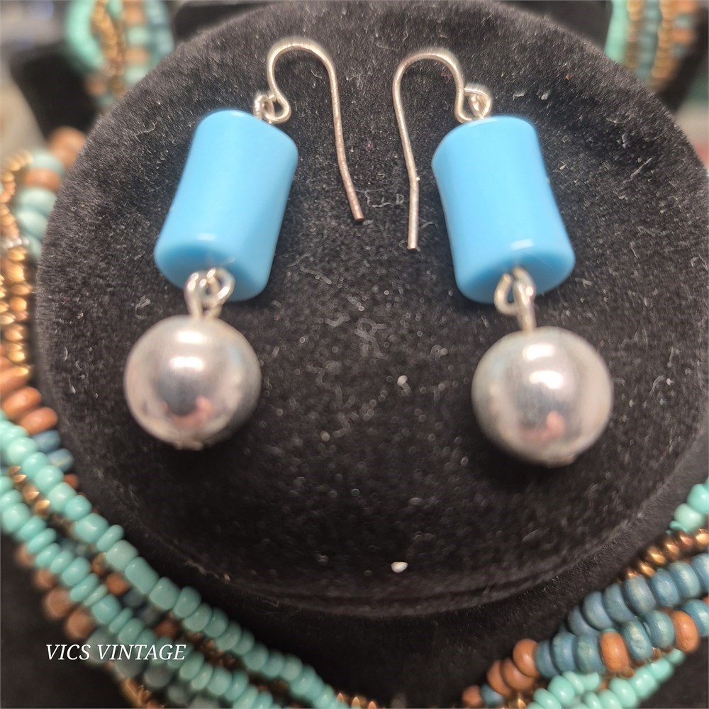 Art Deco Style Silver Tone Faux Turquoise Pendant Dangle Necklace