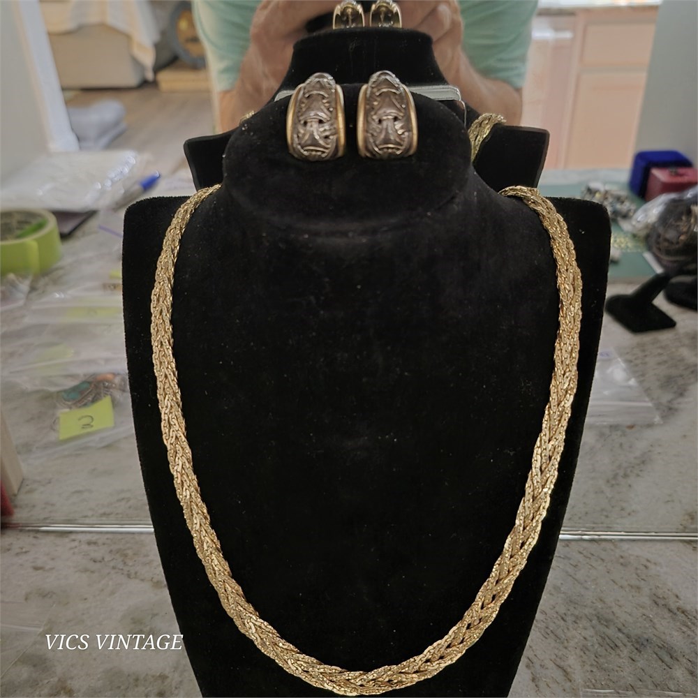 Heavy GOLD twisted Necklace & Gold post Earrings