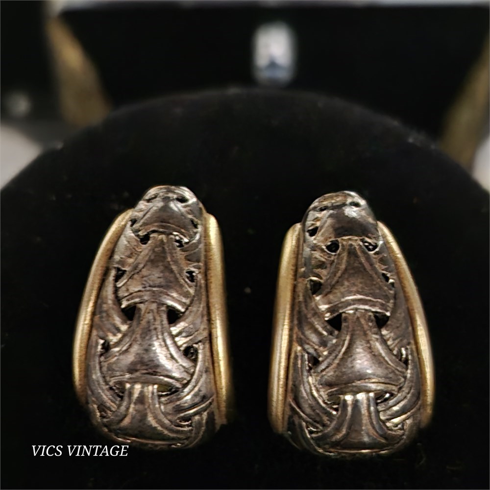 > post earrings are gold with Brutalist centers